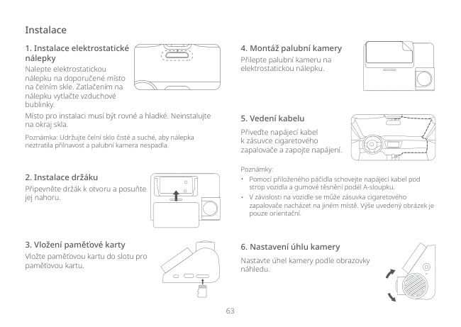 The dash cam requires a MicroSD card with a minimum capacity of 32GB and a rating of U3 (UHS-3) or above. A memory card is sold separately and must be installed before use. The default file partition format of the card may be incompatible with the dash cam, so you should format it in the device before first use. (Page 4)