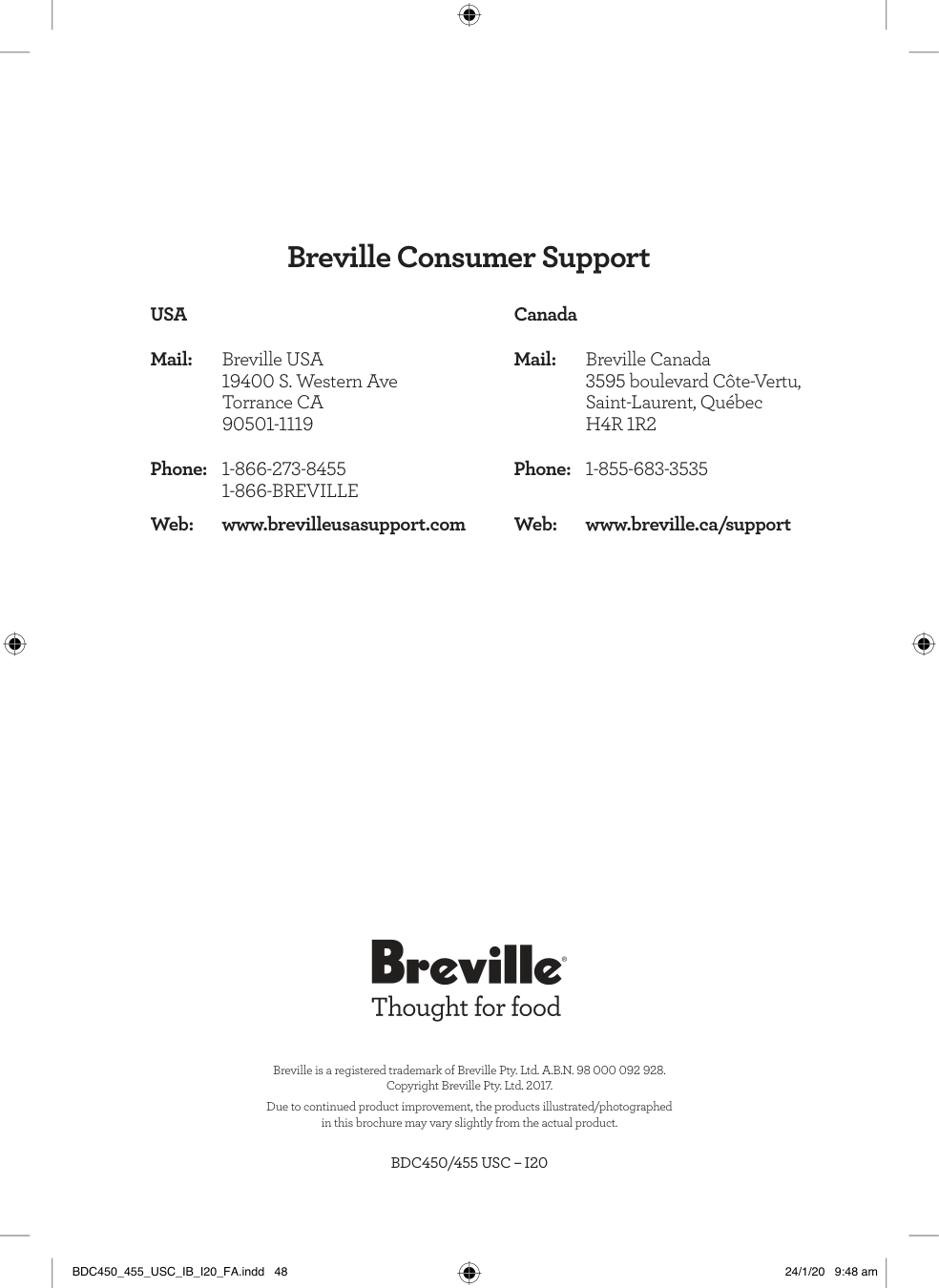 Web: www.breville.ca/support Web: www.brevilleusasupport.comUsa