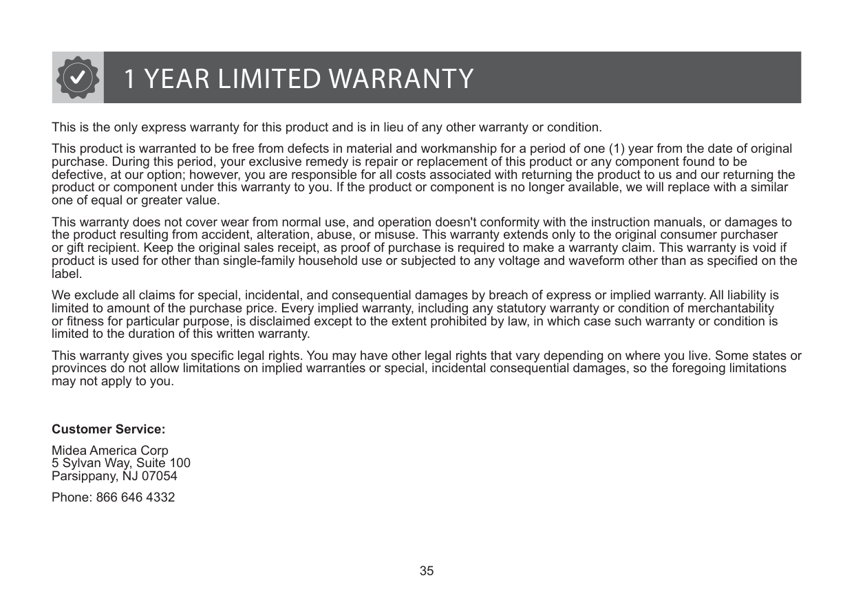 Warranty .................................................................35