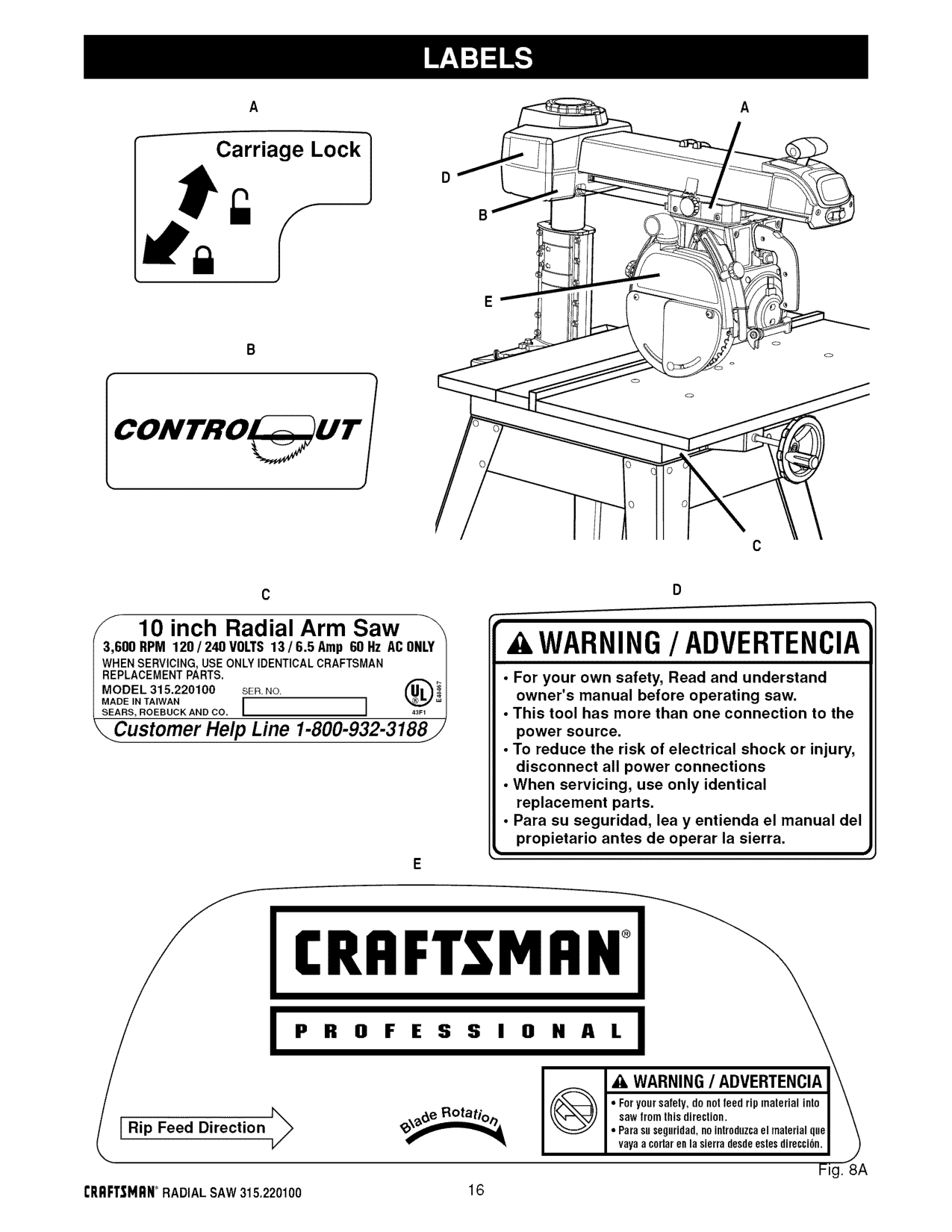 7 8 ./ \ 11 10 12 w, FIGURE JCraftsman Radial Arm Saw-
