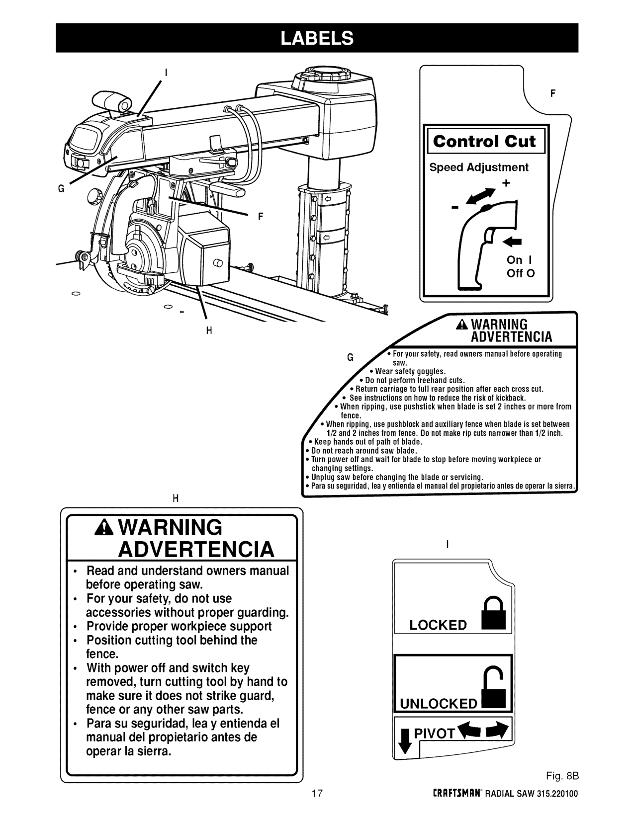 ON TOOL. Serious injury could occur if the tool is tipped or if the blade is uninten- tionally contacted.Do Not Overreach.