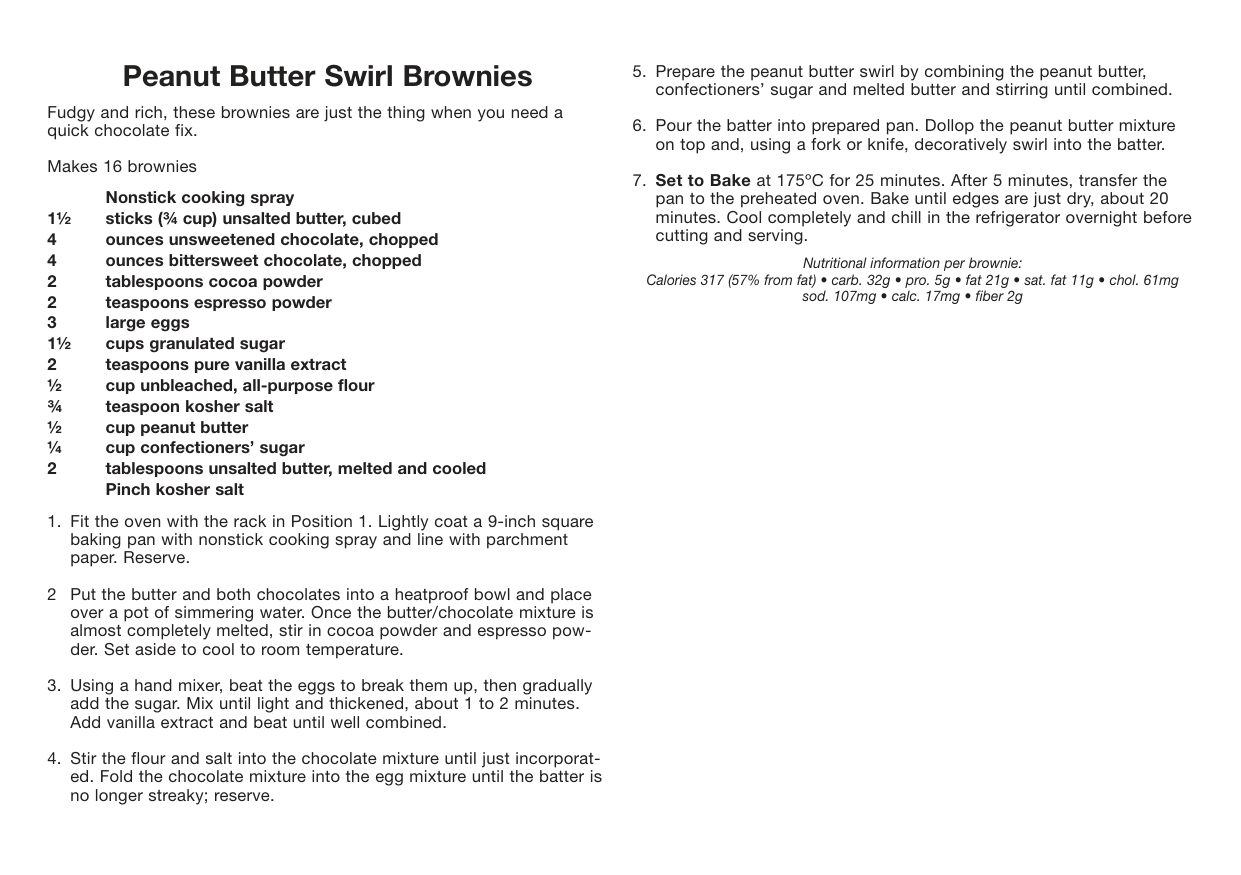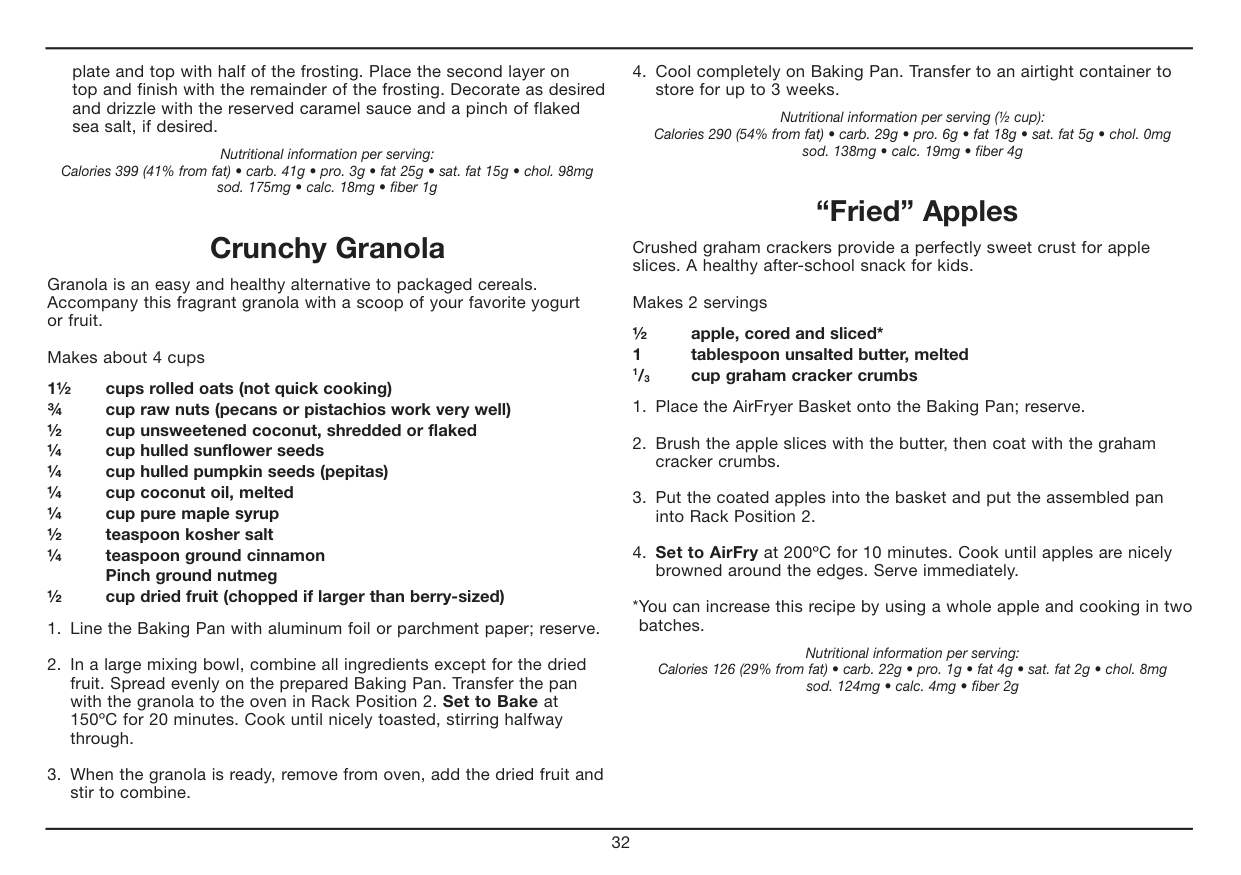 Baked Apples. . . . . . . . . . . . . . . . . . . . . . . . . . . . . . . . . . . . . . . . . . . . . . . . 28 Blueberry Muffins . . . . . . . . . . . . . . . . . . . . . . . . . . . . . . . . . . . . . . . . . . . . . 29 Cinnamon Sugar Doughnut Bites . . . . . . . . . . . . . . . . . . . . . . . . . . . . . . . . 29 Cherry-Ginger Scones . . . . . . . . . . . . . . . . . . . . . . . . . . . . . . . . . . . . . . . . . 30 Chocolate Layer Cake with Salted Caramel Frosting . . . . . . . . . . . . . . . . . 31 Crunchy Granola . . . . . . . . . . . . . . . . . . . . . . . . . . . . . . . . . . . . . . . . . . . . . 32 “Fried” Apples . . . . . . . . . . . . . . . . . . . . . . . . . . . . . . . . . . . . . . . . . . . . . . . 32 Peanut Butter Swirl Brownies . . . . . . . . . . . . . . . . . . . . . . . . . . . . . . . . . . . 3310