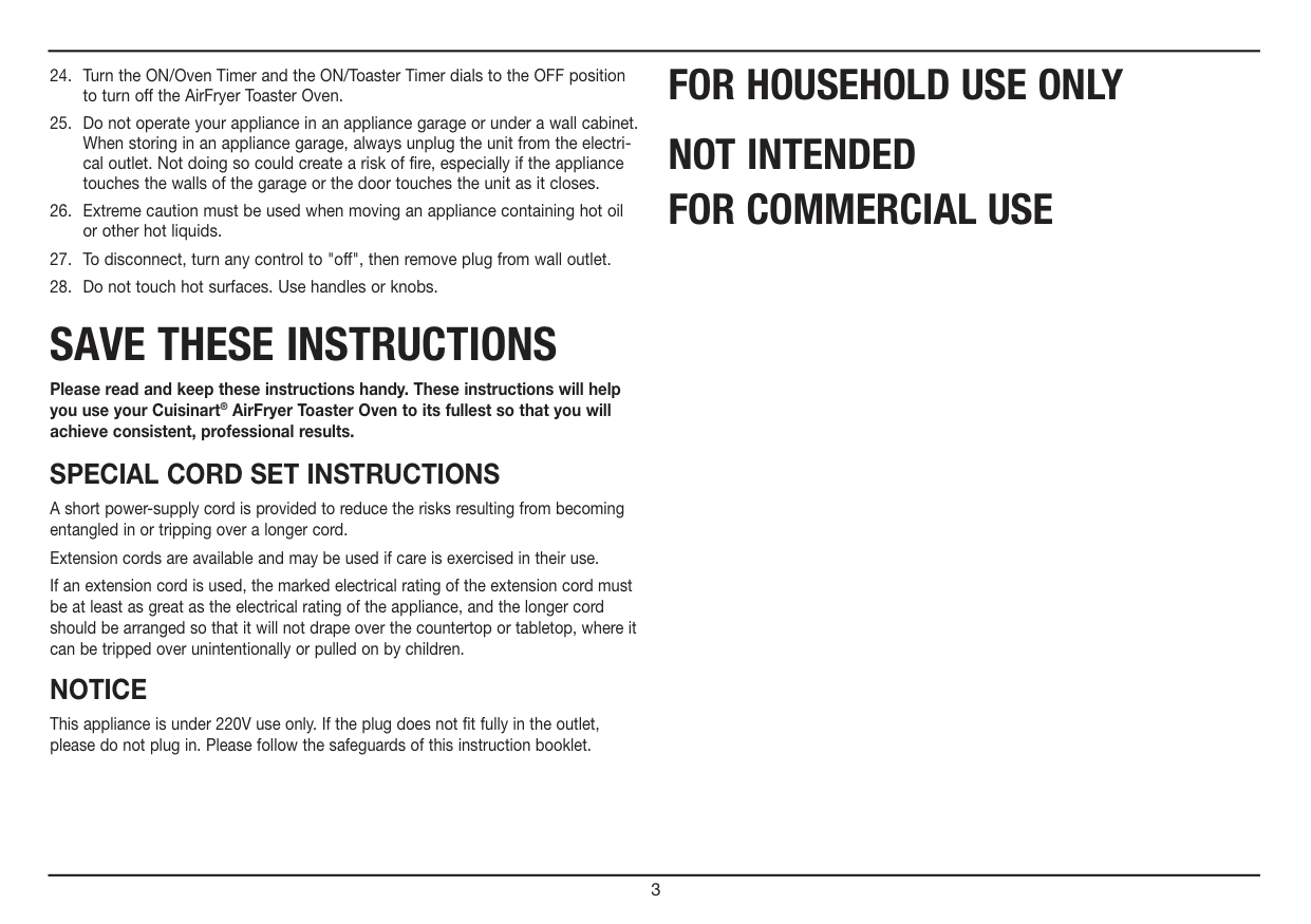 Please read and keep these instructions handy. These instructions will help you use your Cuisinart® AirFryer Toaster Oven to its fullest so that you will achieve consistent, professional results.Special Cord Set Instructions
