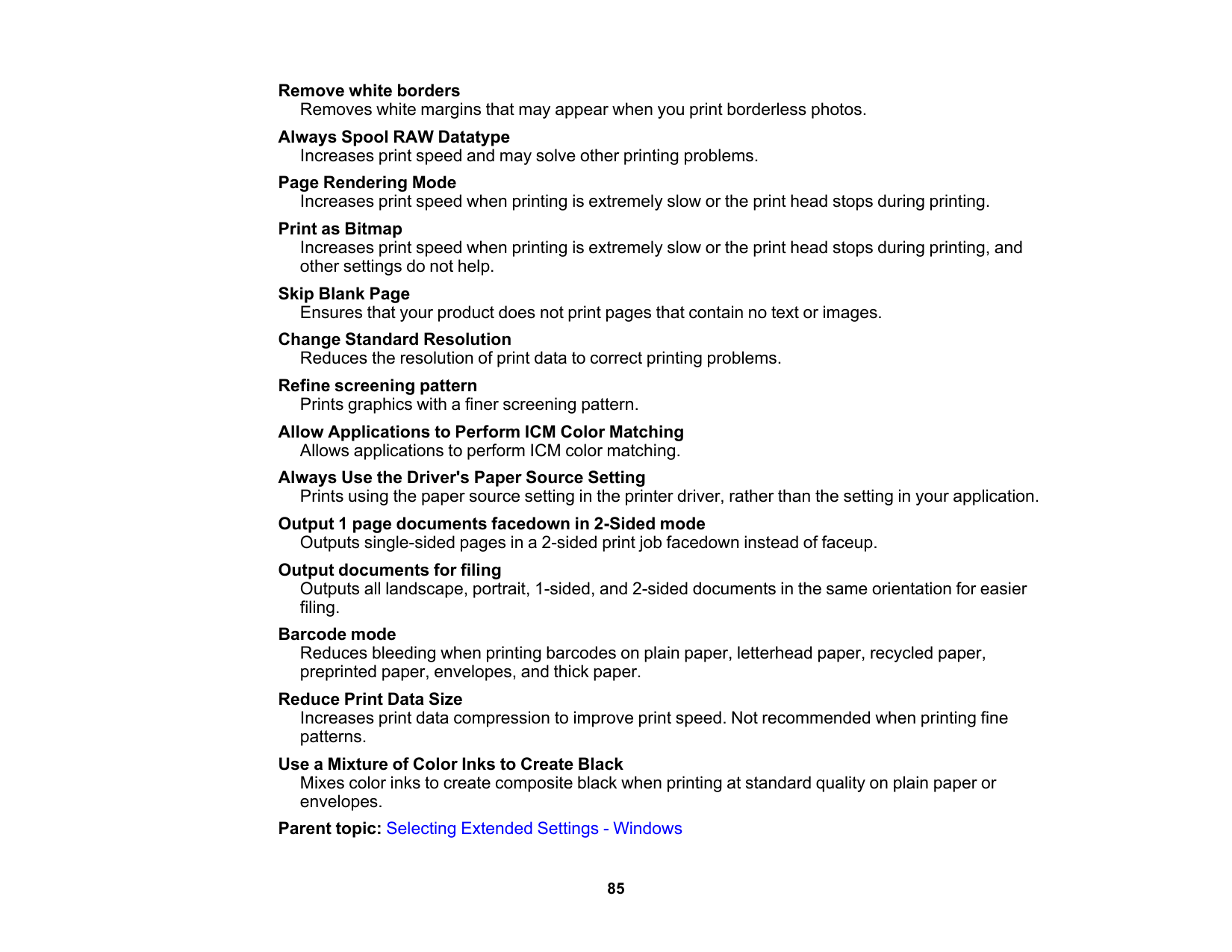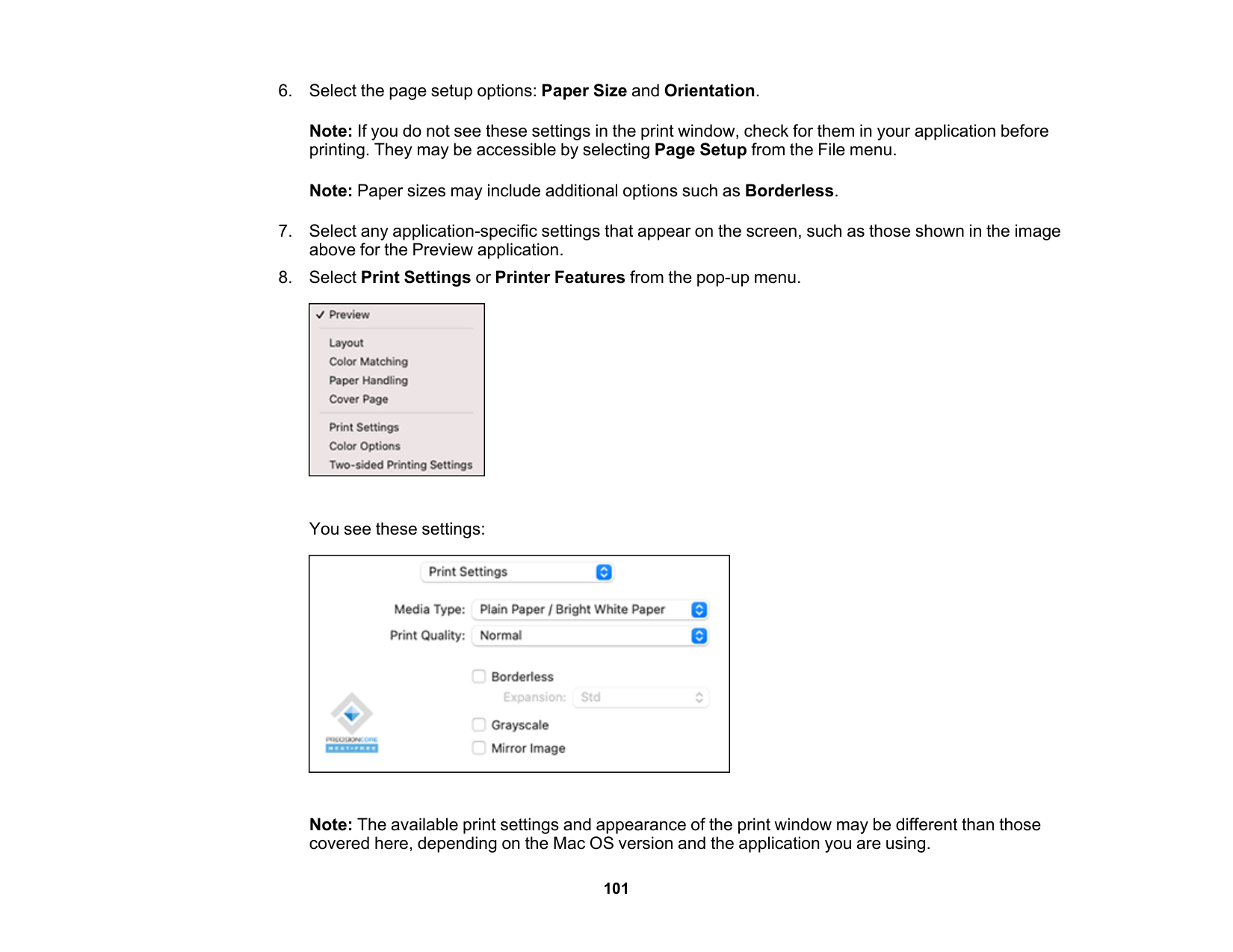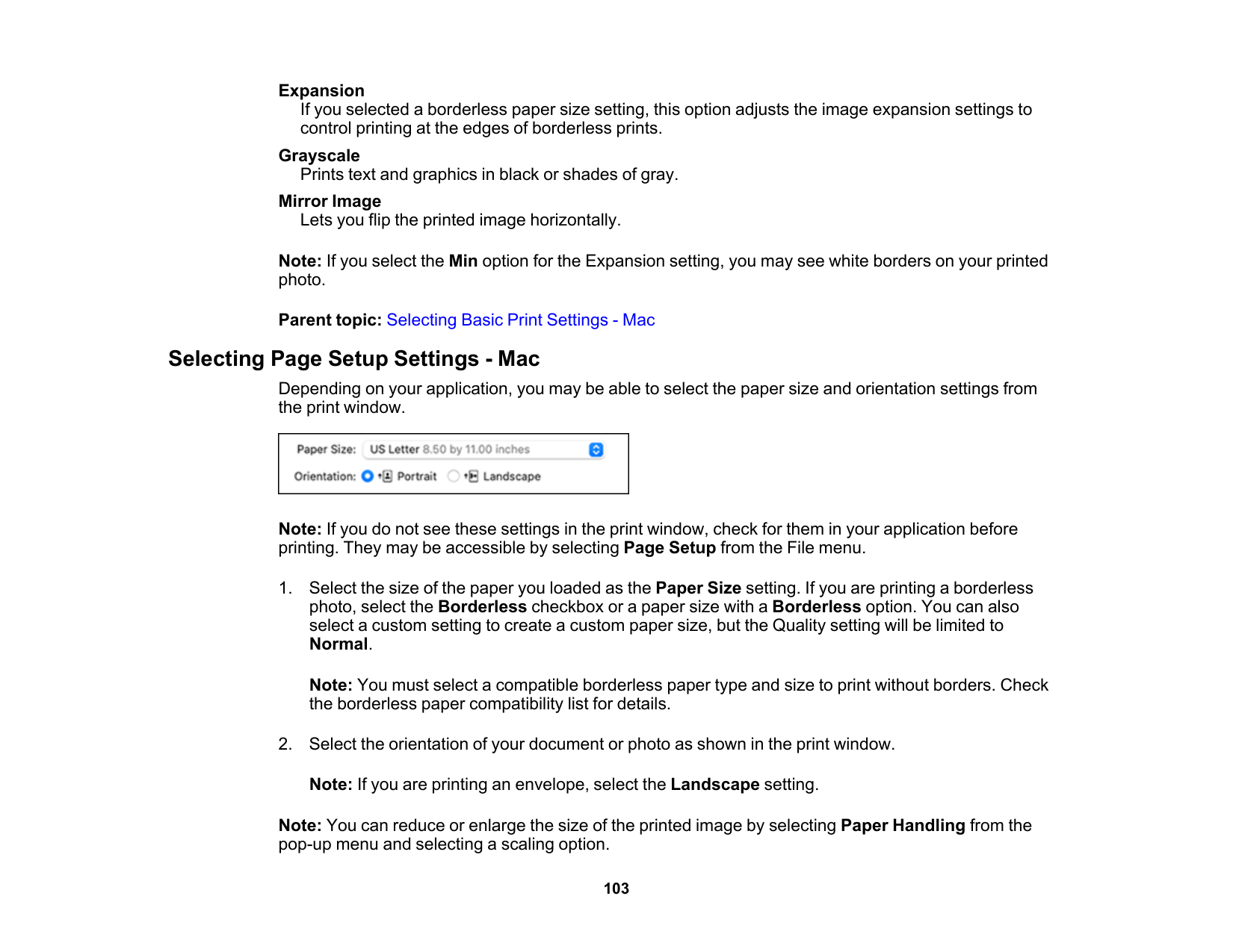 219 Parent topic: Solving Page Layout and Content Problems Related tasks Selecting Basic Print Settings - Windows Loading Paper in the Rear Paper Feeder Selecting Page Setup Settings - Mac Placing Originals on the Scanner Glass Selecting Basic Print Settings - Mac Border Appears on Borderless Prints If you see a border on borderless prints, try these solutions: