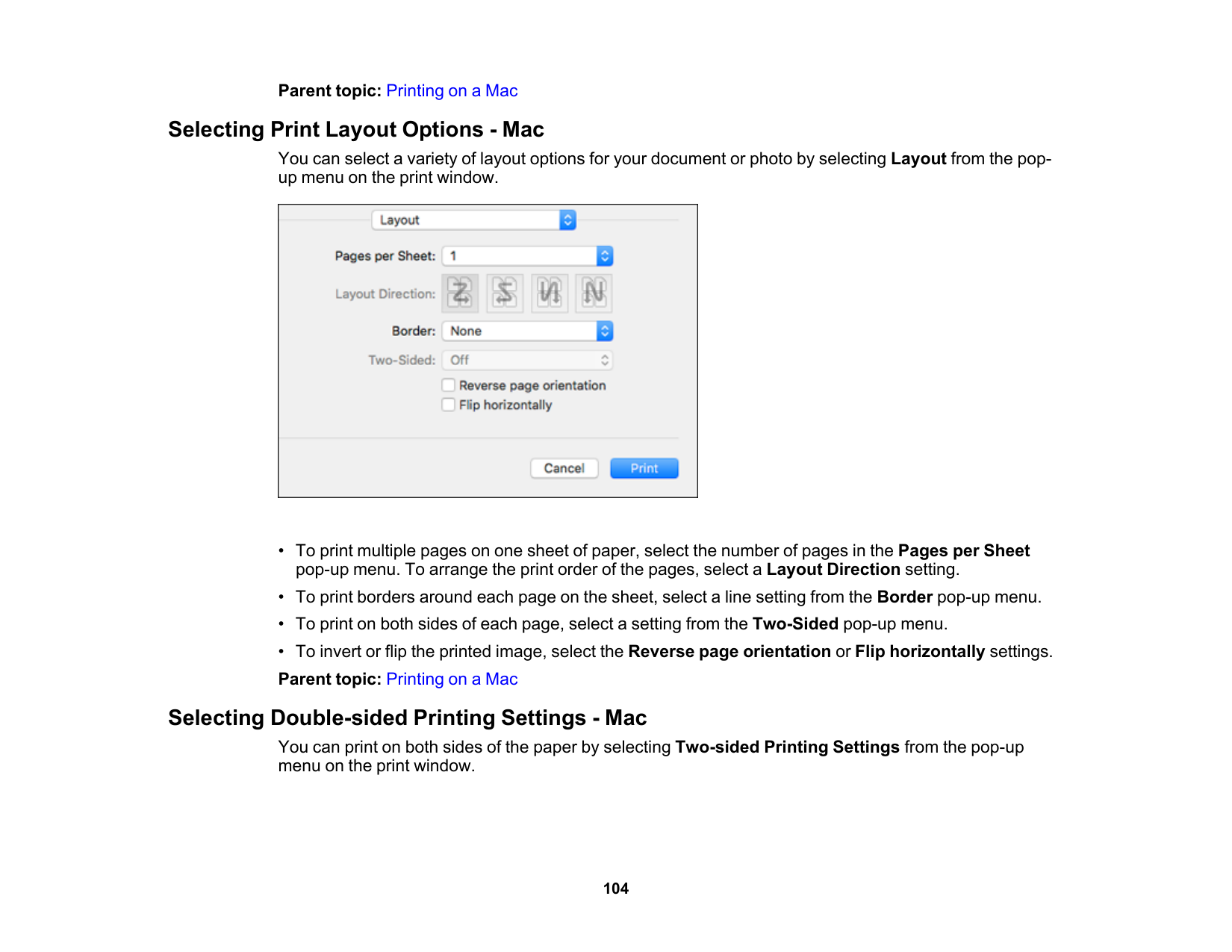 217 Note: When printing using AirPrint, the available print settings are different from those covered in this manual. See the Apple website for details. Inverted Image Too Many Copies Print Blank Pages Print Incorrect Margins on Printout Border Appears on Borderless Prints Incorrect Characters Print Incorrect Image Size or Position Slanted Printout Parent topic: Solving Problems Inverted Image If your printed image is inverted unexpectedly, try these solutions: