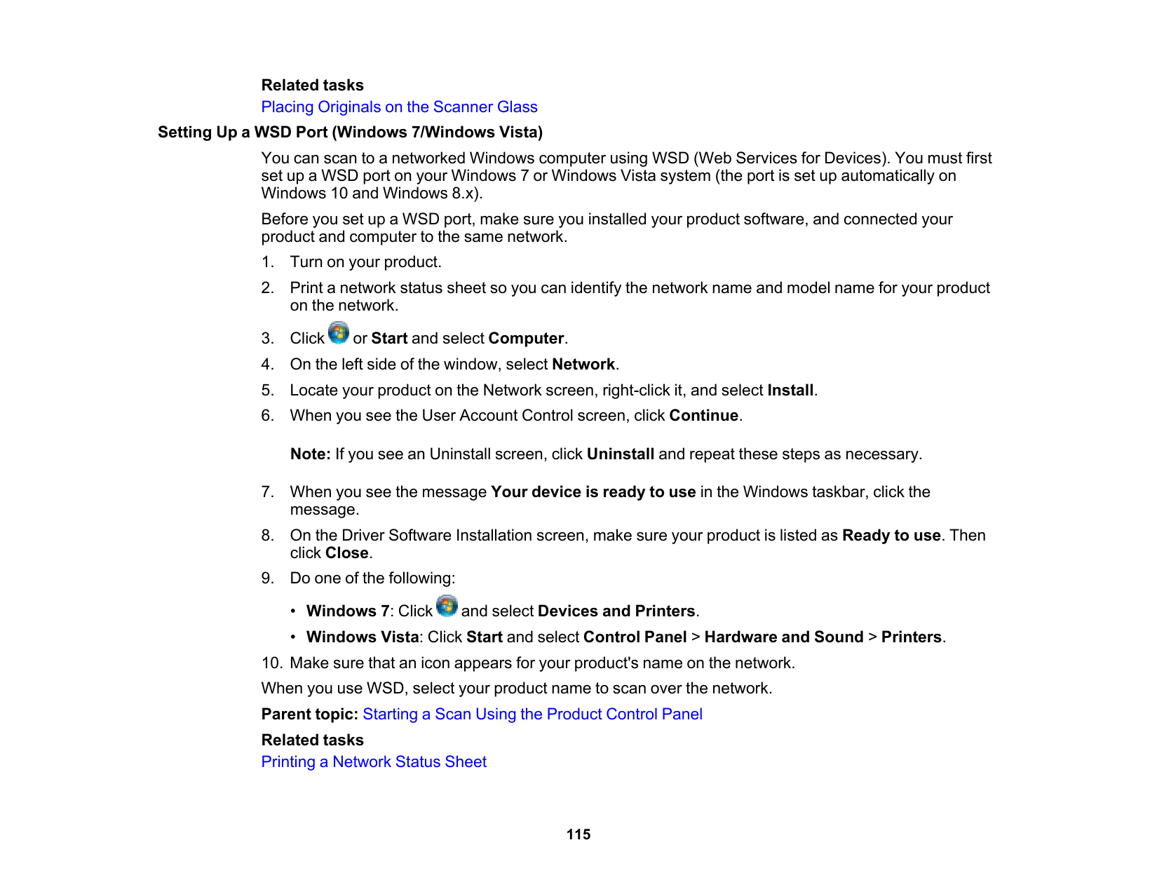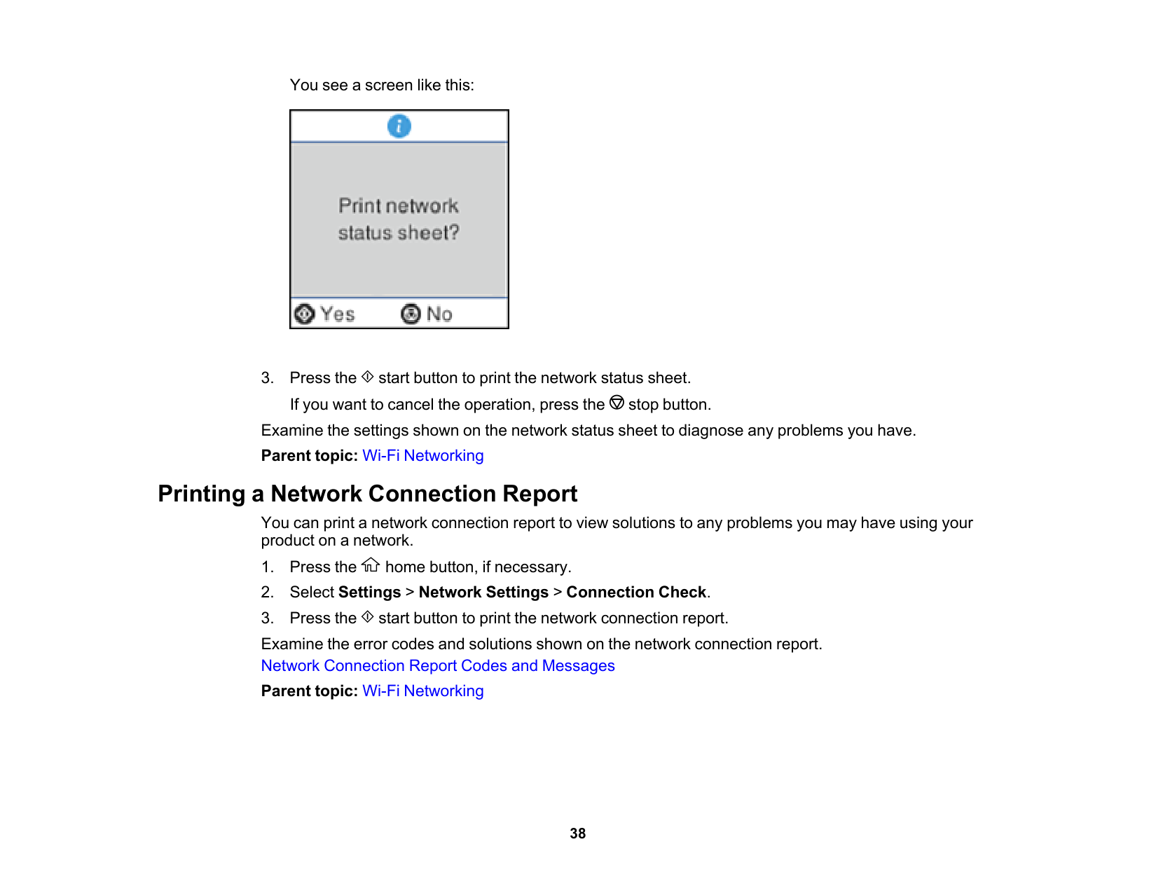 204 Related concepts Uninstall Your Product Software Related references Cannot Scan Over a Network Related tasks Printing a Network Status Sheet Printing a Network Connection Report Related topics Wi-Fi Networking Cannot Scan Over a Network If you have problems scanning over a network, try these solutions: