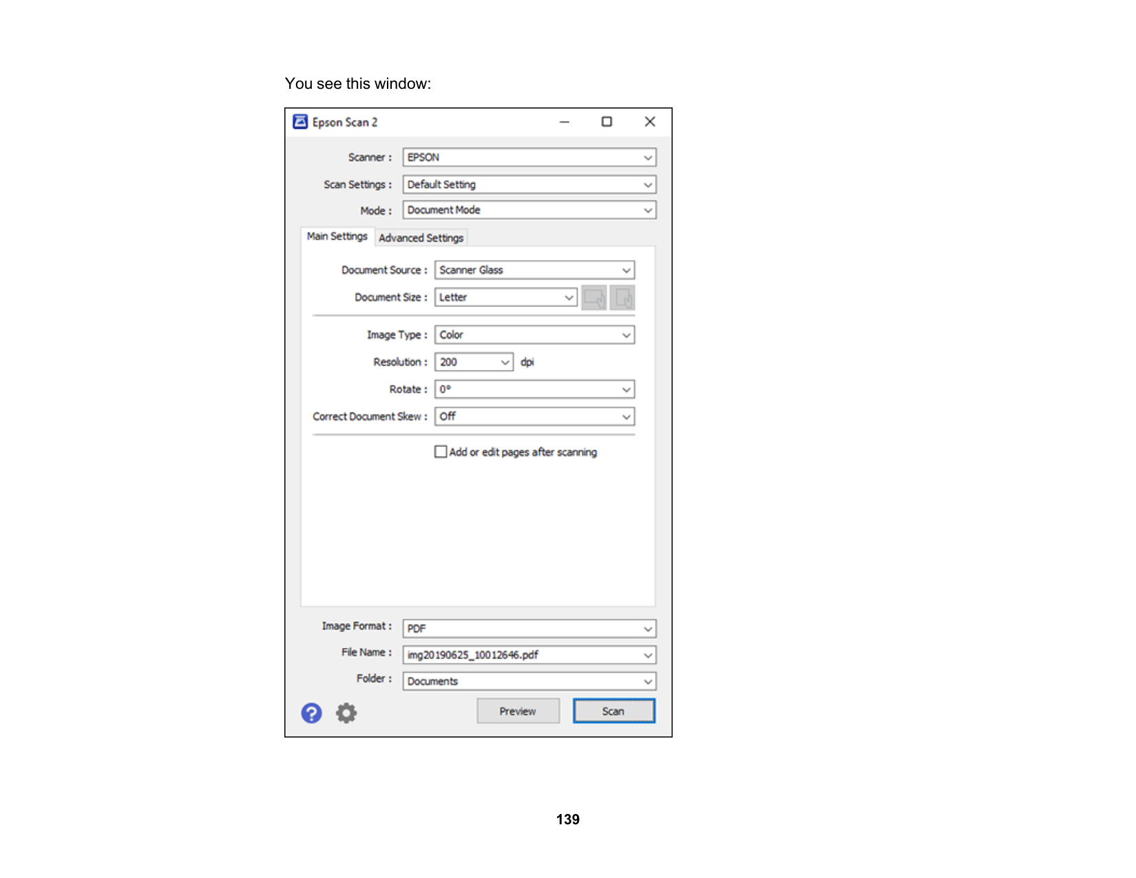 205 Windows (other versions): Click or Start > All Programs or Programs > EPSON > Epson Scan 2 > Epson Scan 2 Utility. Make sure your product is selected. If necessary, select the Other tab and click Reset. Mac: Open the Applications folder, click Epson Software, and click Epson Scan 2 Utility. Make sure your product is selected. If necessary, select the Other tab and click Reset.