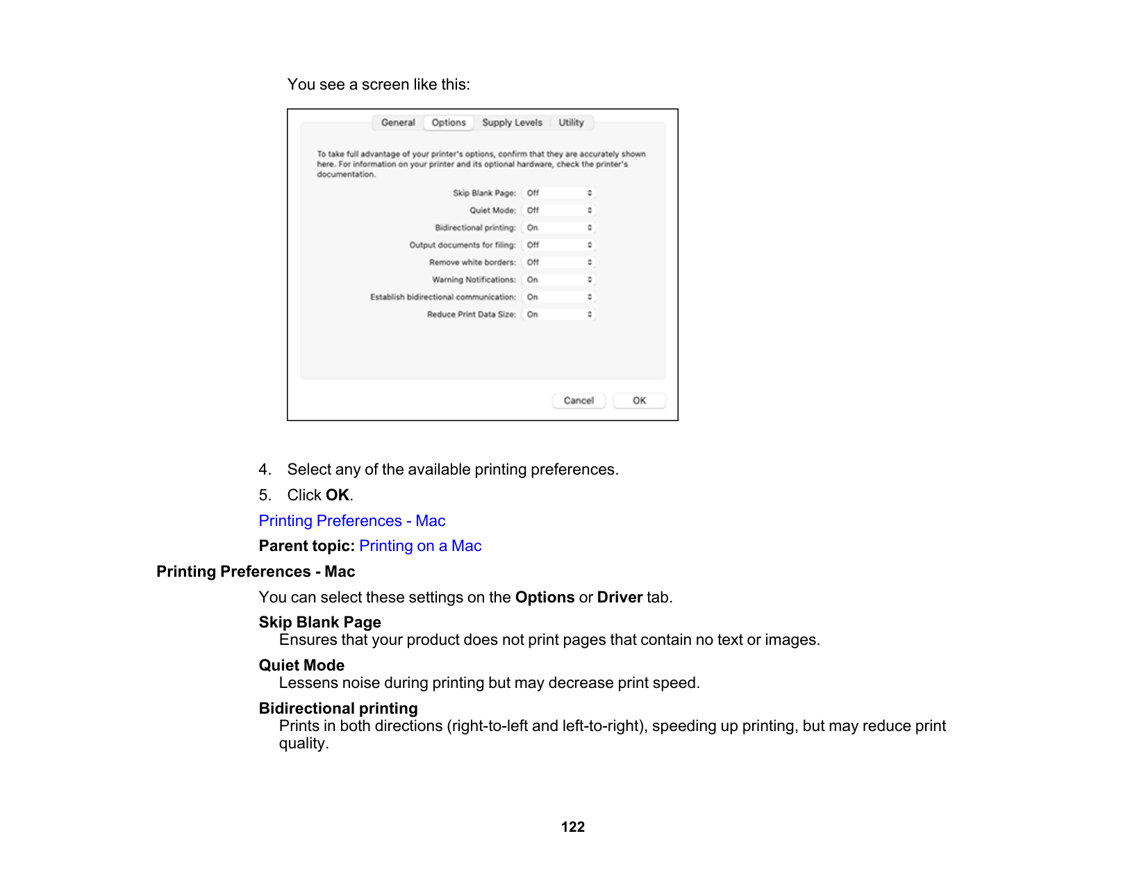 248 Selecting Basic Print Settings - Mac Selecting Printing Preferences - Mac Selecting Extended Settings - Windows Aligning the Print Head Using the Product Control Panel Selecting Double-sided Printing Settings - Windows Selecting Double-sided Printing Settings - Mac Faint Printout or Printout Has Gaps If your printouts are faint or have gaps, try these solutions: