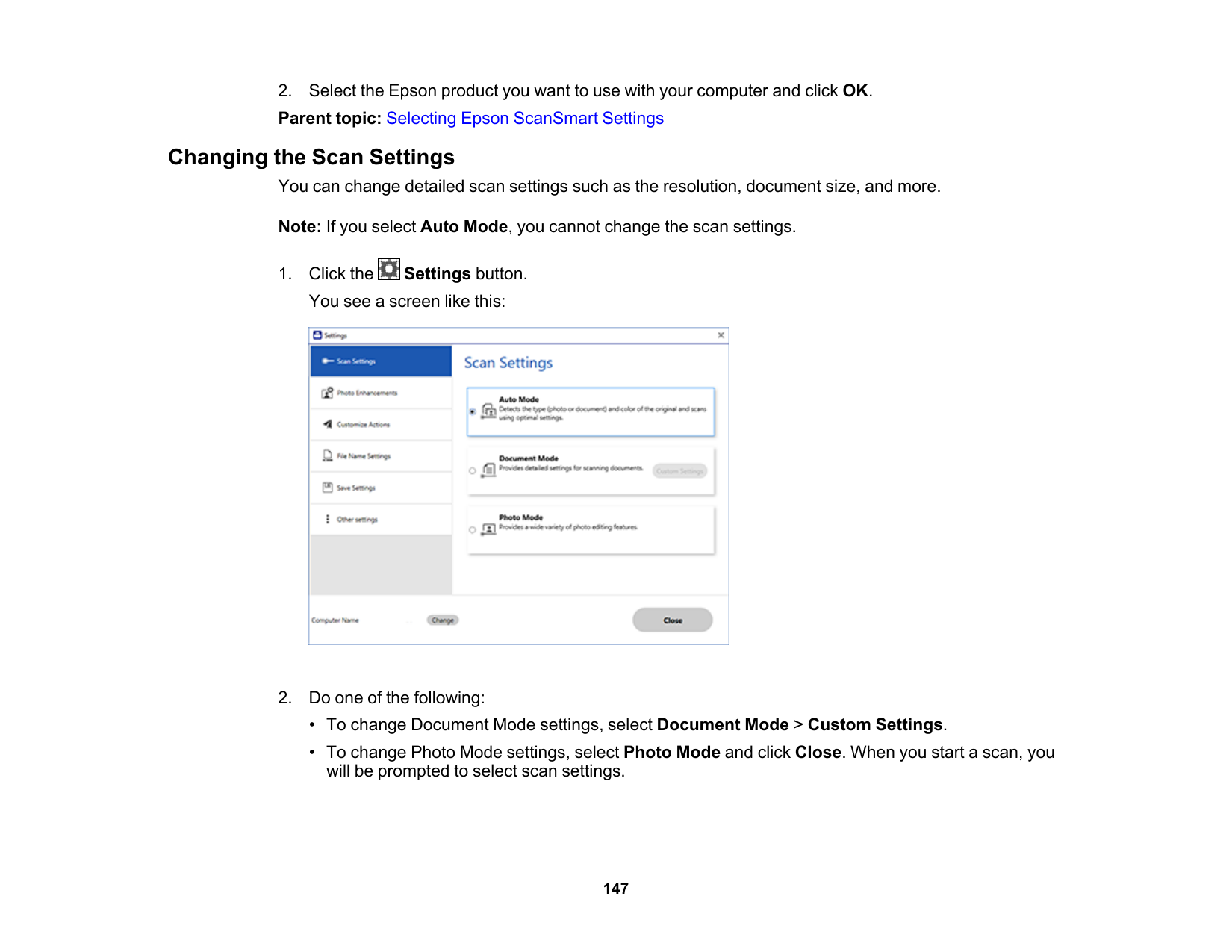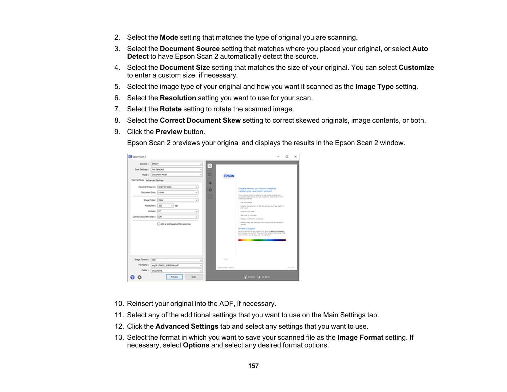 259 Resetting the Epson Scan 2 Settings If you continue to experience image quality problems after trying all possible solutions, you may need to reset the Epson Scan 2 settings using the Epson Scan 2 Utility.