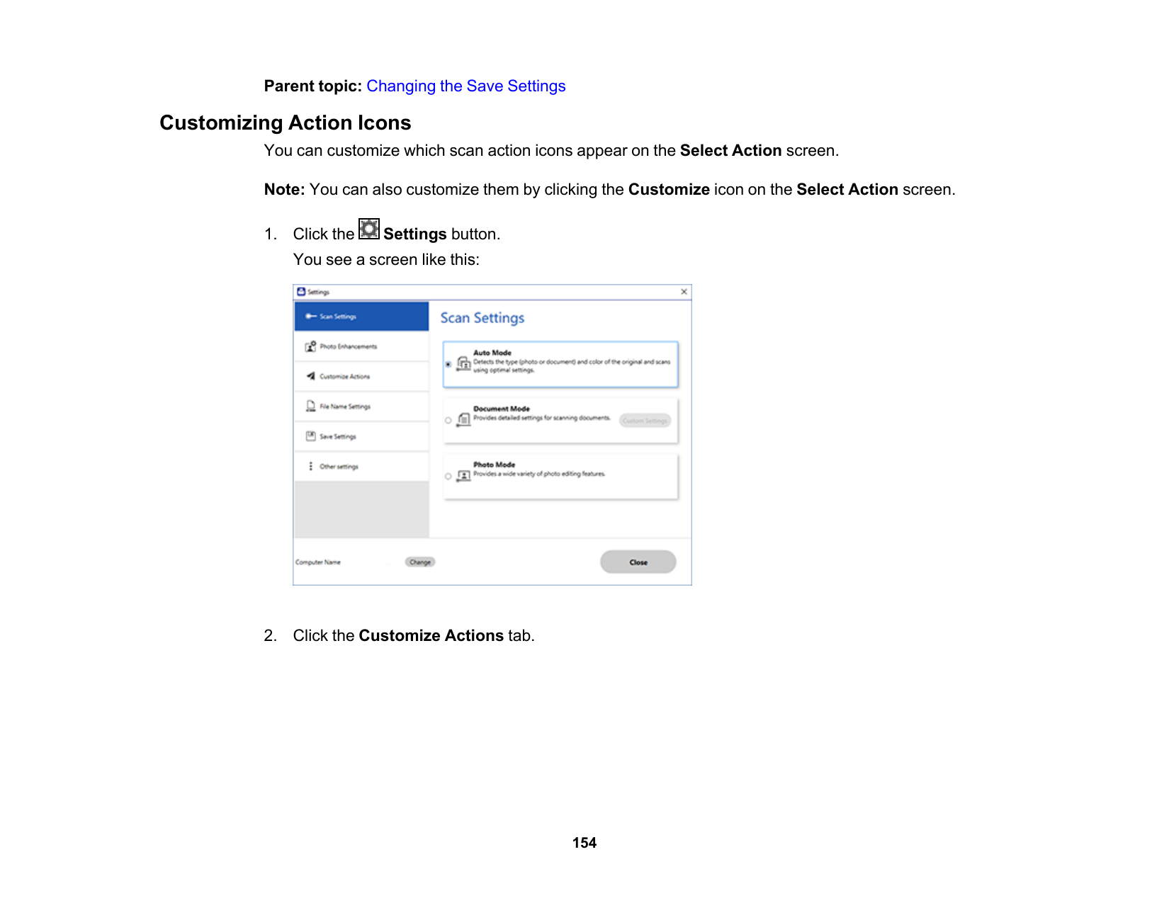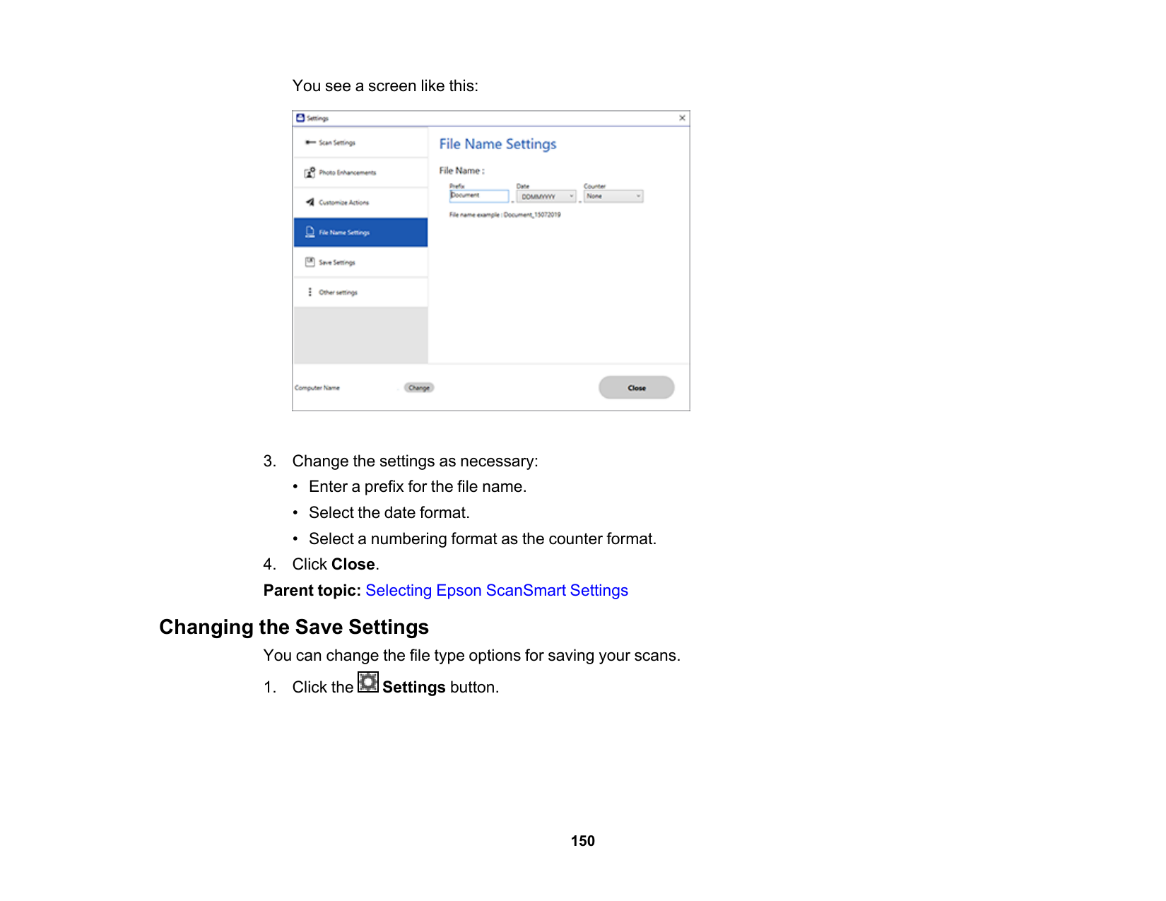 257 Check the color matching and color management capabilities of your computer, display adapter, and the software you are using to see if they are affecting the palette of colors you see on your screen. To adjust the colors in your scanned image, adjust these Epson Scan 2 or Epson ScanSmart settings (if available) and try scanning again: