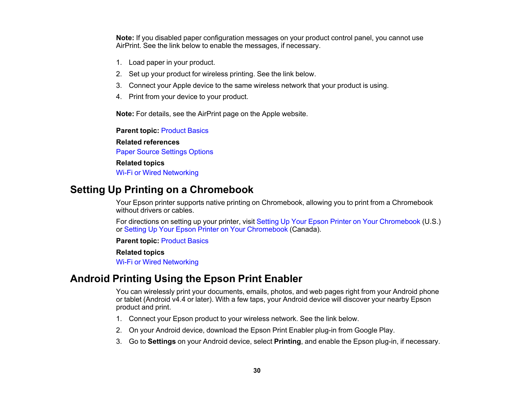 30 Note: If you disabled paper configuration messages on your product control panel, you cannot use AirPrint. See the link below to enable the messages, if necessary.