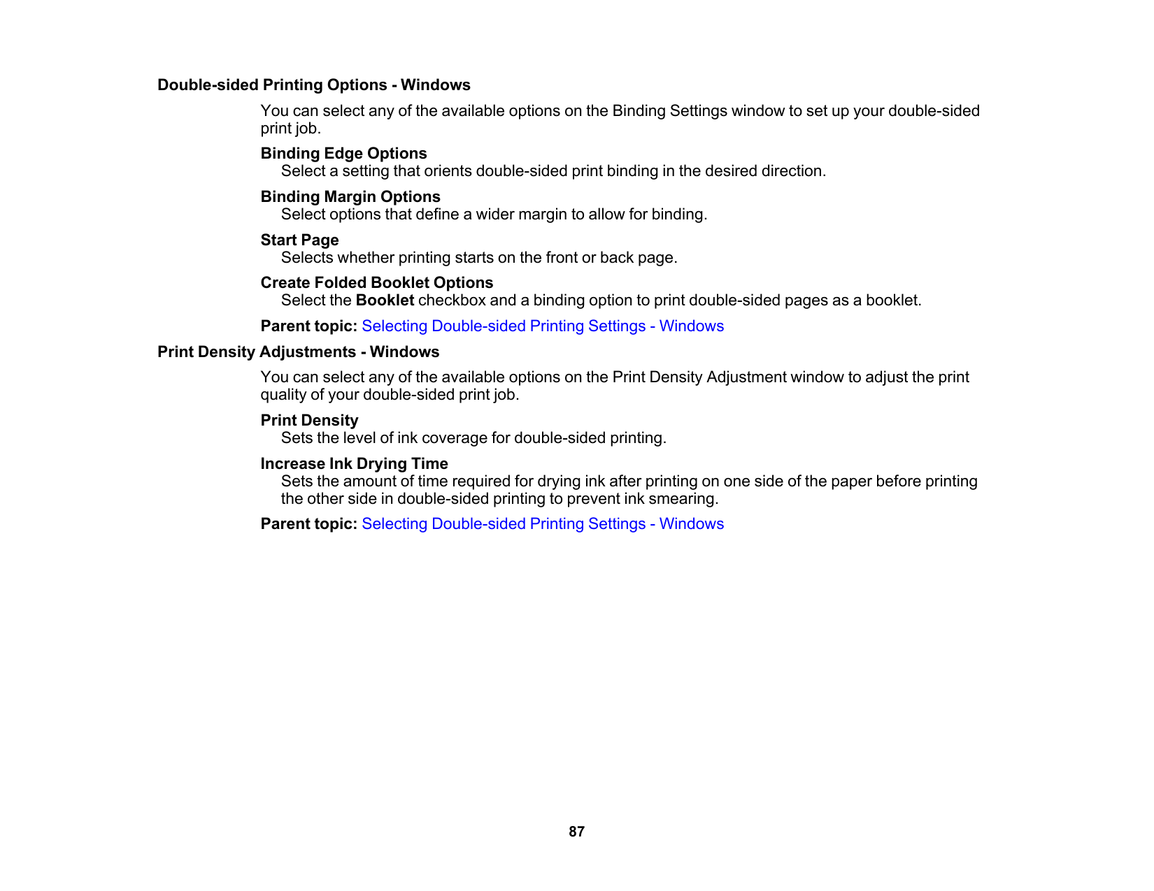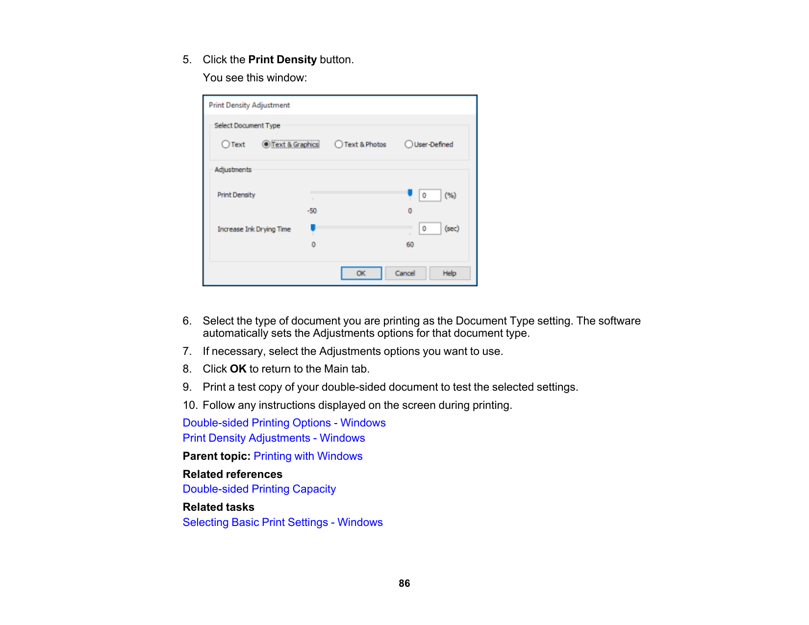 247 Make sure the ink has dried before reloading the paper to print on the other side. Adjust the density and/or ink drying time settings.