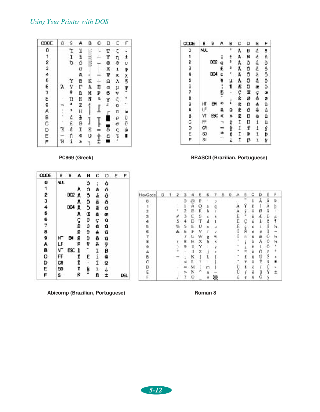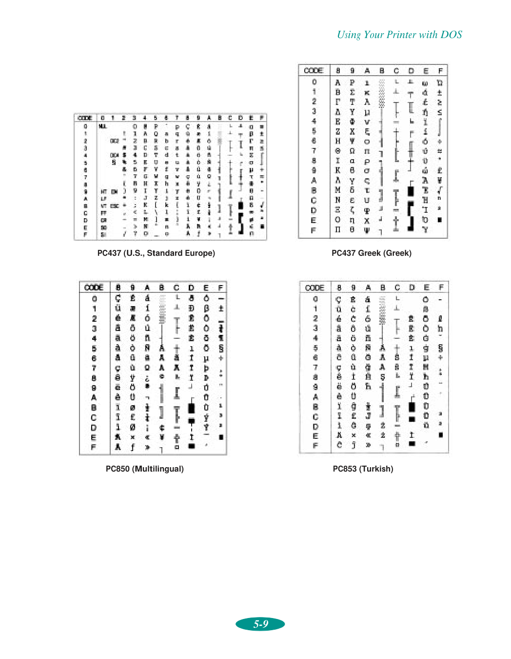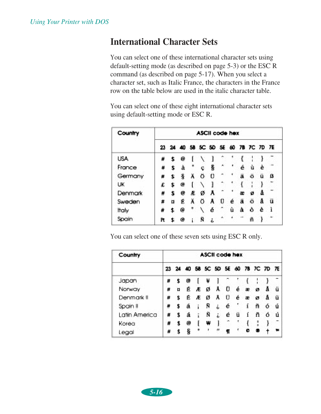 Cable cover, 3-15 Cancelling changes, printer software, 1-4, 1-9 Canvas cloth, see Ink Jet Canvas Cloth Cards, see Ink jet cards Character tables, 5-6, 5-8 to 5-17,C-2