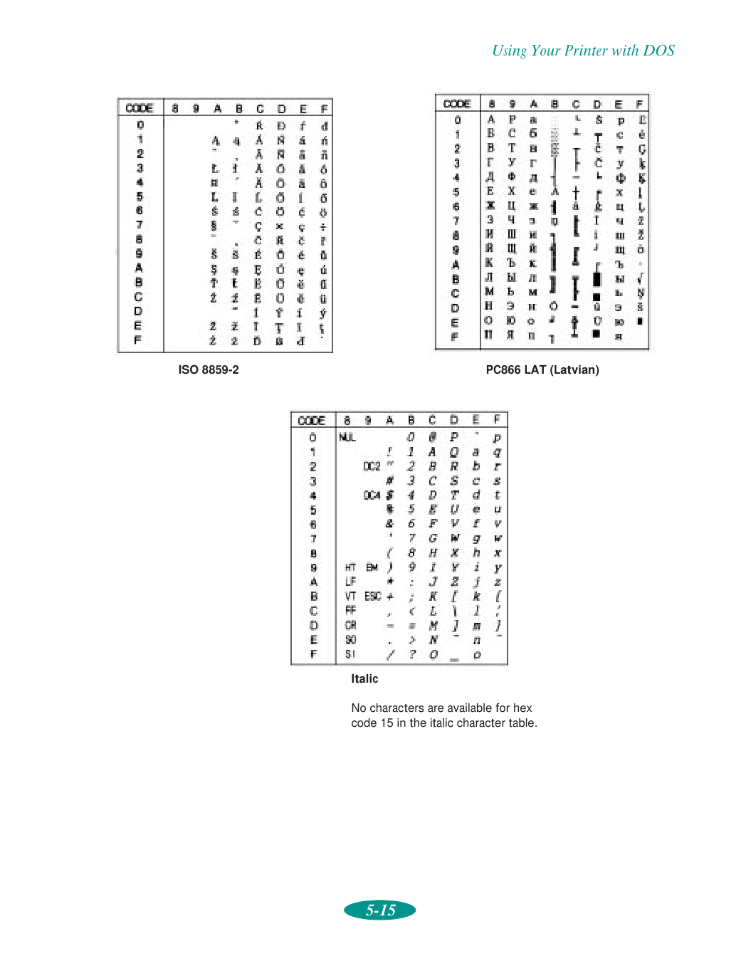 Iron-On Transfer Paper choosing, 3-2 to 3-4 printing on, 2-6, 3-4 Italic character set, 5-15J