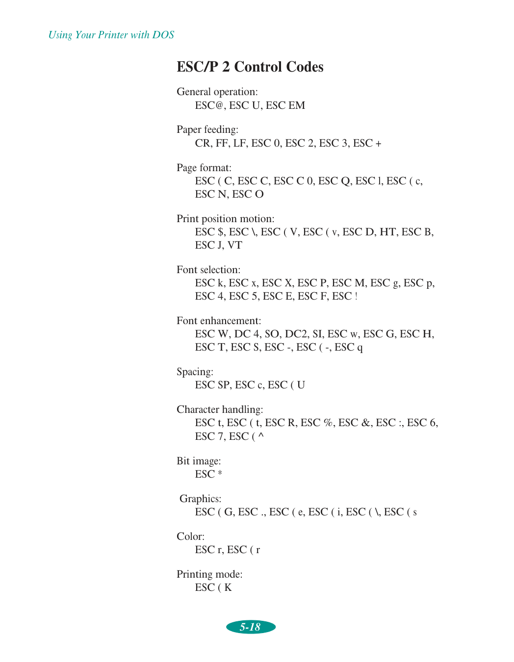 Abbreviation for EPSON Standard Code for Printers. This system of commands gives you control of your printer from your computer. It is standard for all EPSON printers and supported by most application programs for personal computers.Esc/P 2