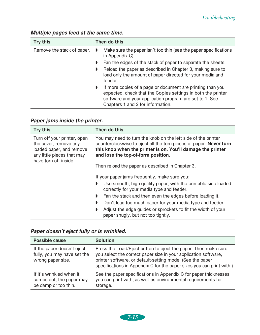 Jammed paper, 1-13, 7-9, 7-15K