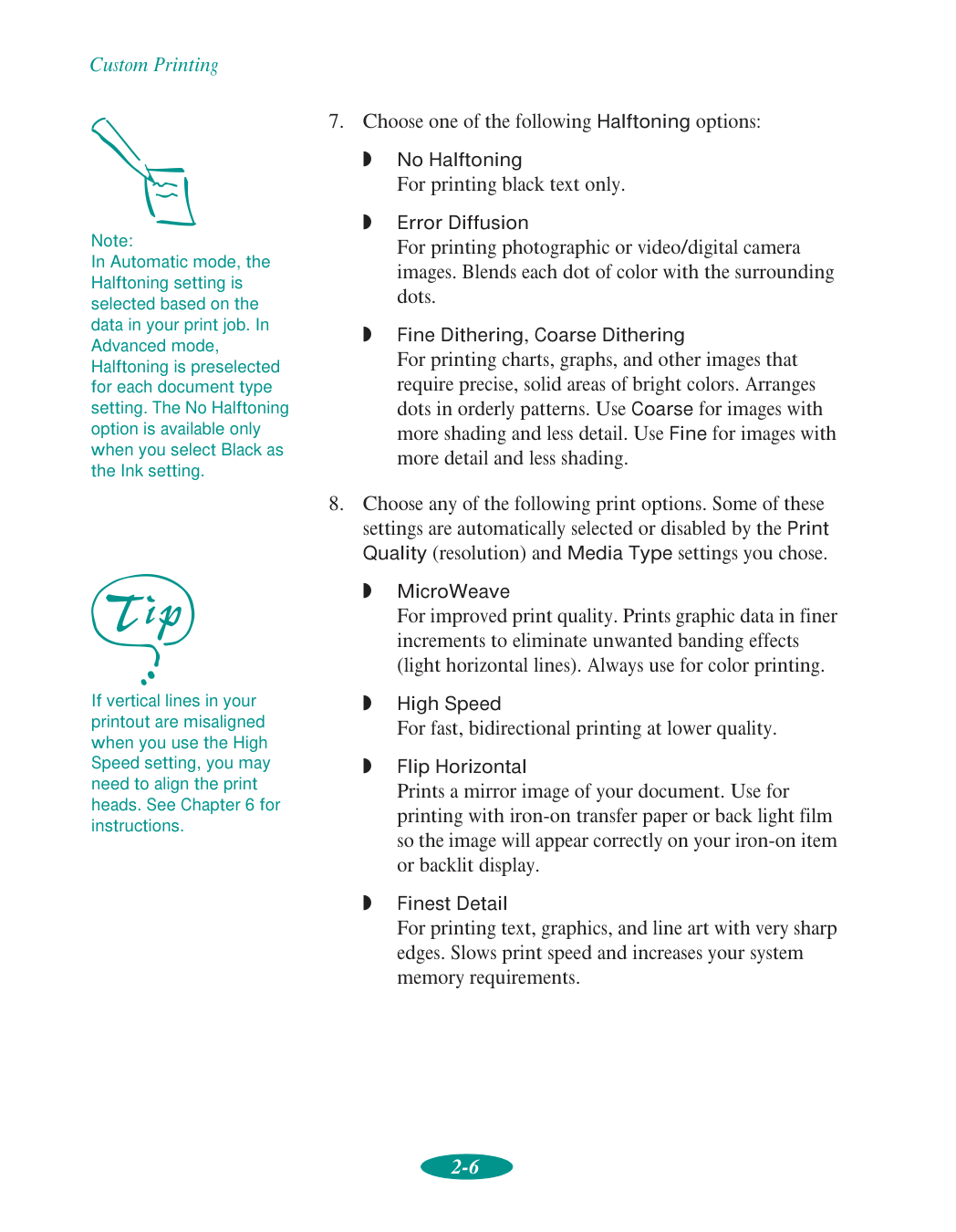 Error Diffusion This halftoning setting smooths out edges by randomly placing dots of varying colors.Esc/P