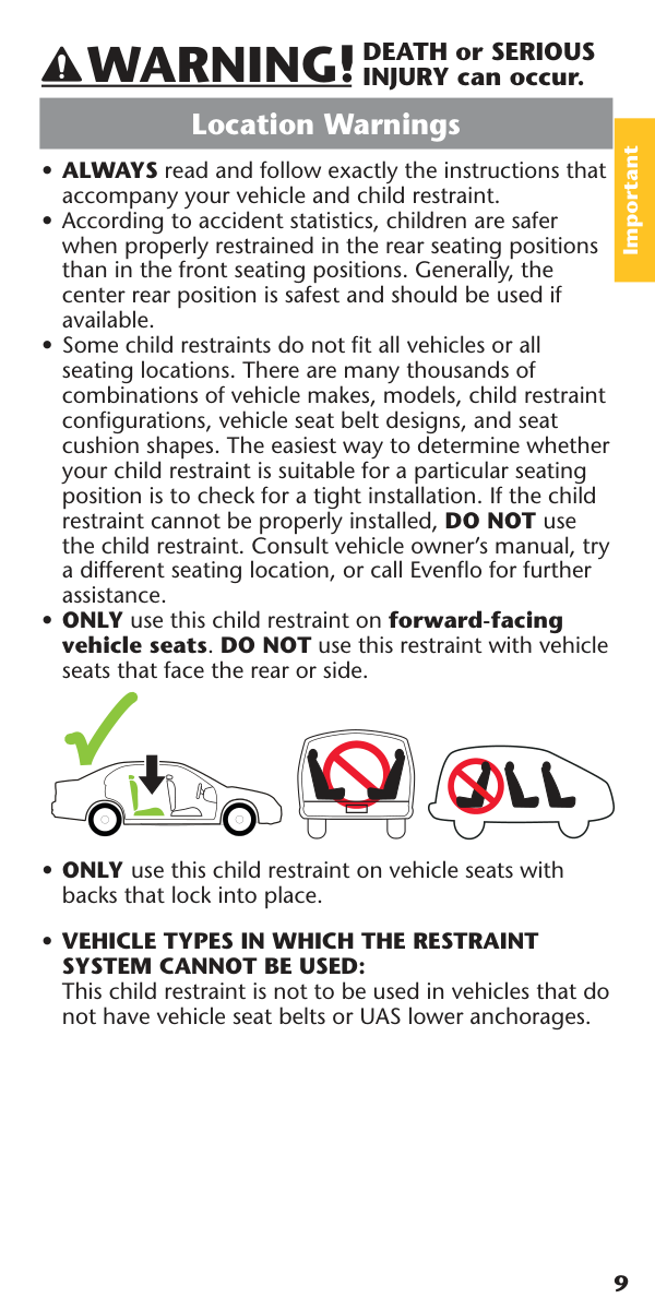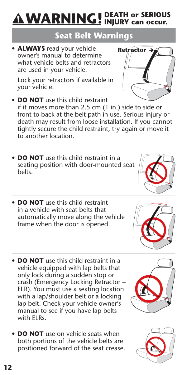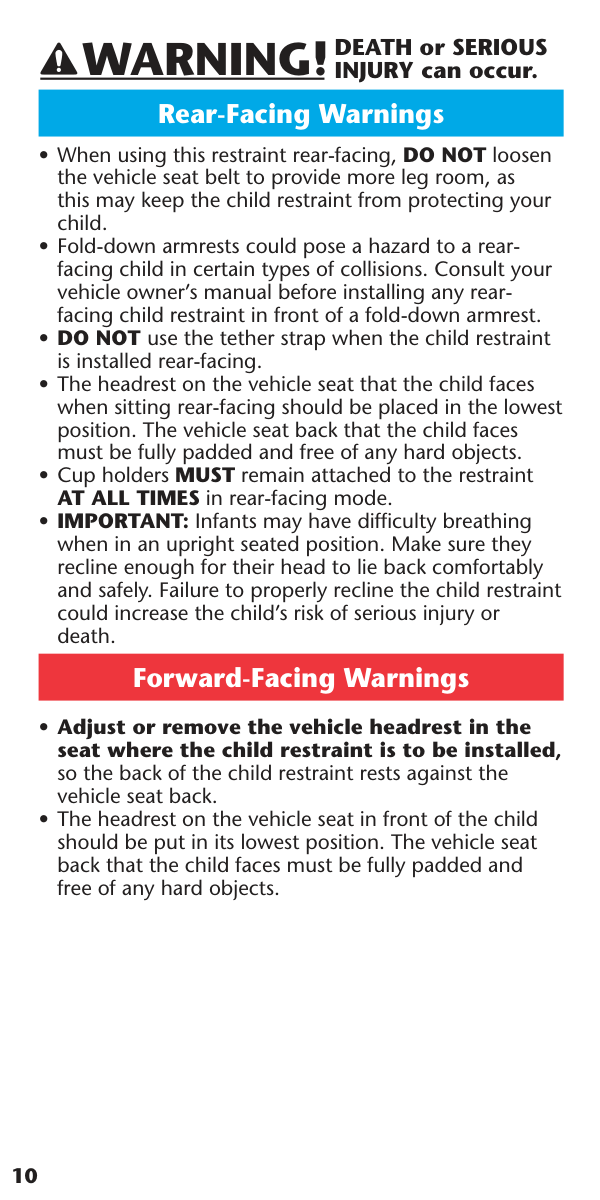 DEATH or SERIOUS INJURY can occur. Rear-Facing Warnings Forward-Facing Warnings11
