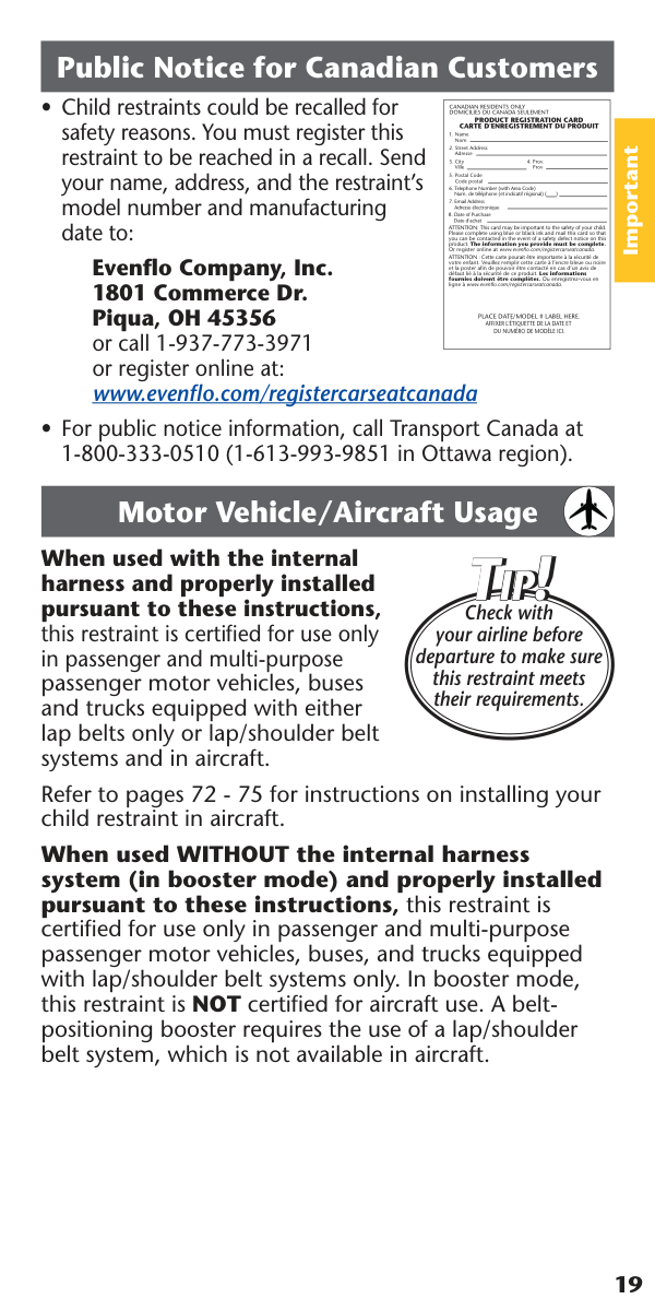 Child Restraint Systems This child restraint conforms to all applicable Federal motor vehicle safety standards.Canadian Regulatory Notice