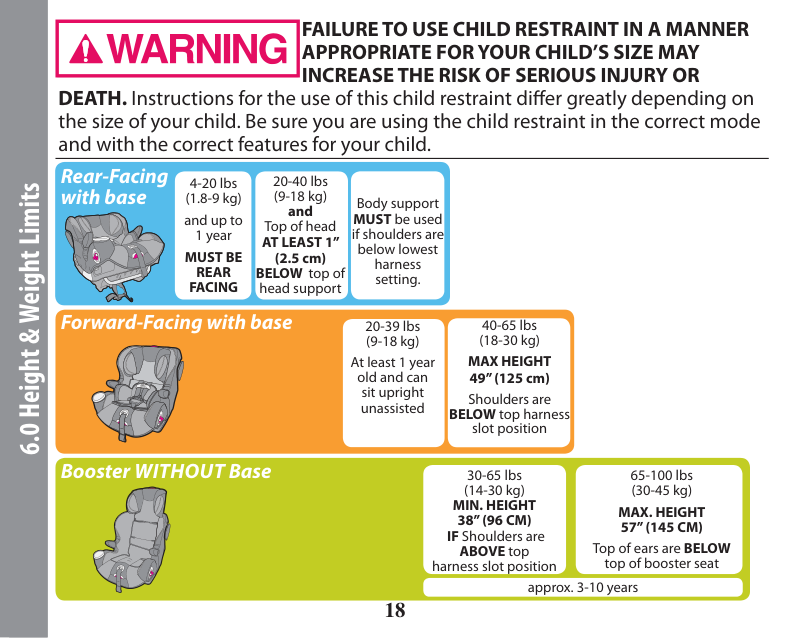 Registration Information Please register this product so we can reach you if there is a safety alert or recall. 7EWILLNOTSELLRENTORSHAREYOURPERSONALINFORMATION4OREGISTERYOURPRODUCTPLEASECOMPLETEANDMAILTHECARDTHATCAMEWITHITORVISITOURONLINEREGISTRATIONat www.evenflo.com/registerproduct. &ORFUTUREREFERENCERECORDTHEmodel number of your CARRIER!.$THEdate of manufactureBELOW. Model Number: Date of Manufacture:2 Parent Shoulder Straps Head Support Shoulder Strap Buckle Vent Opening Side-entry Buckle Connector Strap Waist Buckle Waist Belt Seat Positioning Snaps Head Support Buckle Know Your Carrier