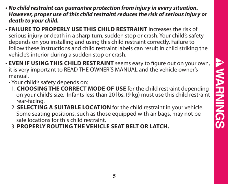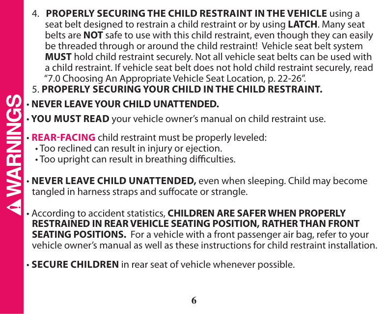s#HILDMUSTFACETOWARDSYOUUNTILHEORSHECANHOLDHEADUPRIGHT s#HECKTOASSUREALLBUCKLESSNAPSSTRAPSANDADJUSTMENTSARESECUREBEFORE each use. s#HECKFORRIPPEDSEAMSTORNSTRAPSORFABRICSANDDAMAGEDFASTENERSBEFORE each use. s%NSUREPROPERPLACEMENTOFCHILDINPRODUCTINCLUDINGLEGPLACEMENT s0REMATUREINFANTSINFANTSWITHRESPIRATORYPROBLEMSANDINFANTSUNDERFOUR months are at the greatest risk of suffocation. s.EVERUSEASOFTCARRIERWHENBALANCEORMOBILITYISIMPAIREDBECAUSEOFEXERCISEDrowsinessOrmedicalconditions