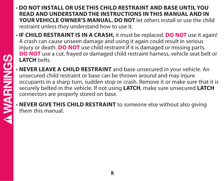 s$ONOTSTRAPINFANTTOOTIGHTAGAINSTYOURBODY s!LLOWROOMFORHEADMOVEMENT s+EEPINFANTSFACEFREEFROMOBSTRUCTIONSATALLTIMES1 sNEVERLEAVECHILDINCARRIERUNLESSBEINGWORNBYCAREGIVER#HILDMAYFALL