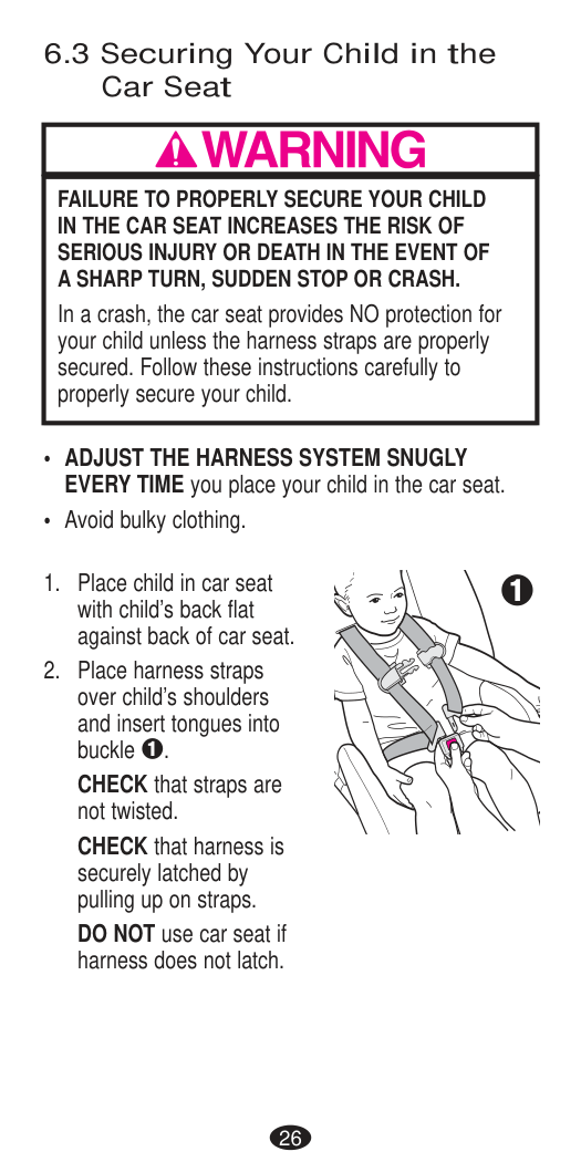 Securing the Child in the Child Restraint70