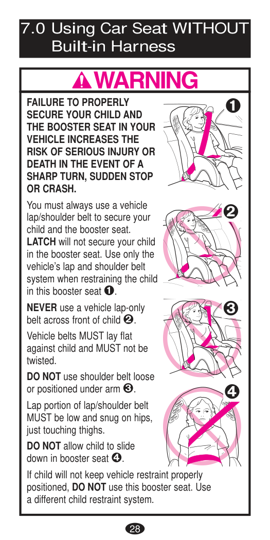 DEATH or SERIOUS INJURY can occur. Booster Mode Warnings Important12
