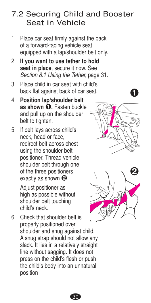 Forward-facing with Lap/Shoulder Belt Forward-facing Installation with Vehicle Seat BeltsPlace