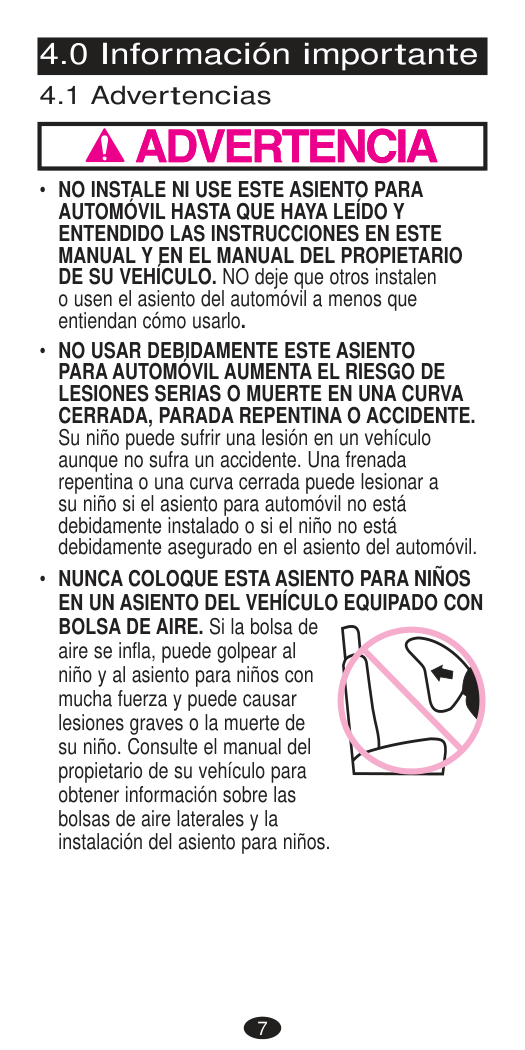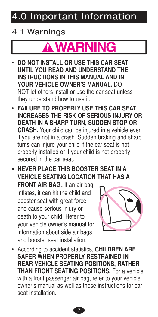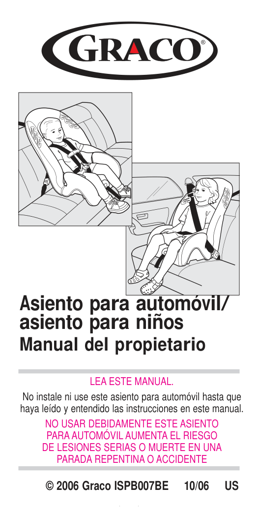 To reduce the risk of serious injury or death, read this owner’s manual prior to installing and using this child restraint.
