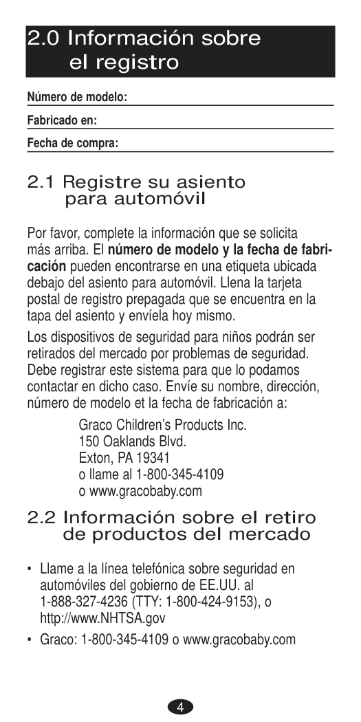 Para instrucciones en Español, llamar al: 1-800-233-5921Rear-Facing*