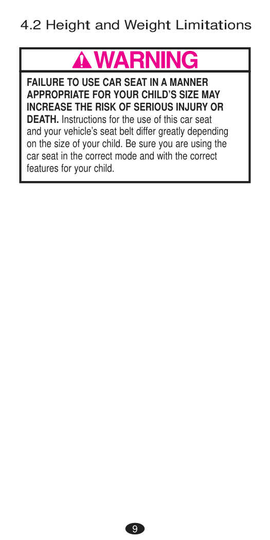 DEATH or SERIOUS INJURY can occur. Rear-Facing Warnings Forward-Facing Warnings11