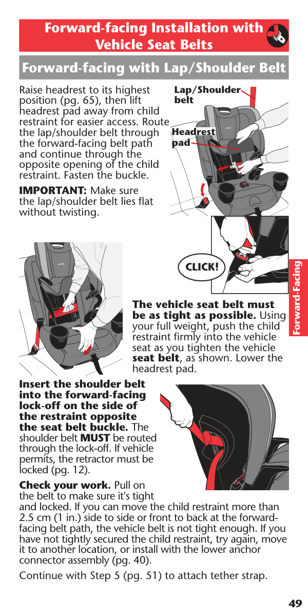 DEATH or SERIOUS INJURY can occur. Forward-facing Installation with Vehicle Seat BeltsForward-Facing 51