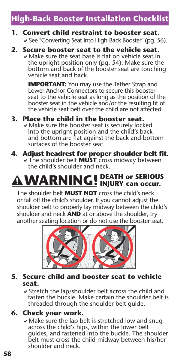 Booster 55 Using Your High-Back Booster Seat Child Requirements