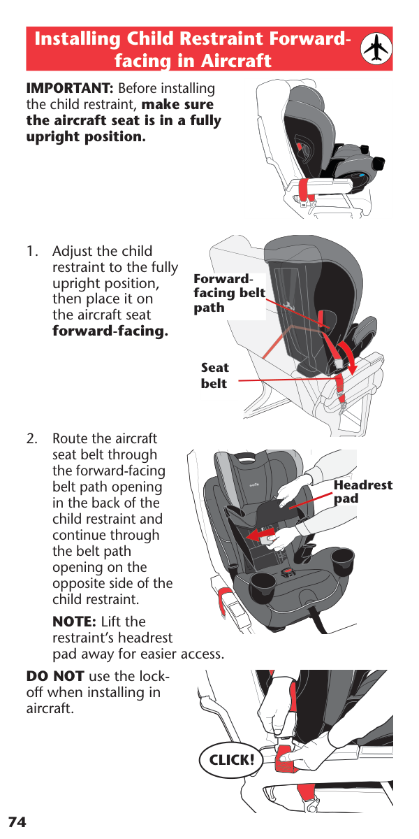 Installing Child Restraint Forward- facing in AircraftForward-Facing 69 Installing Child Restraint Forward- facing in Aircraft