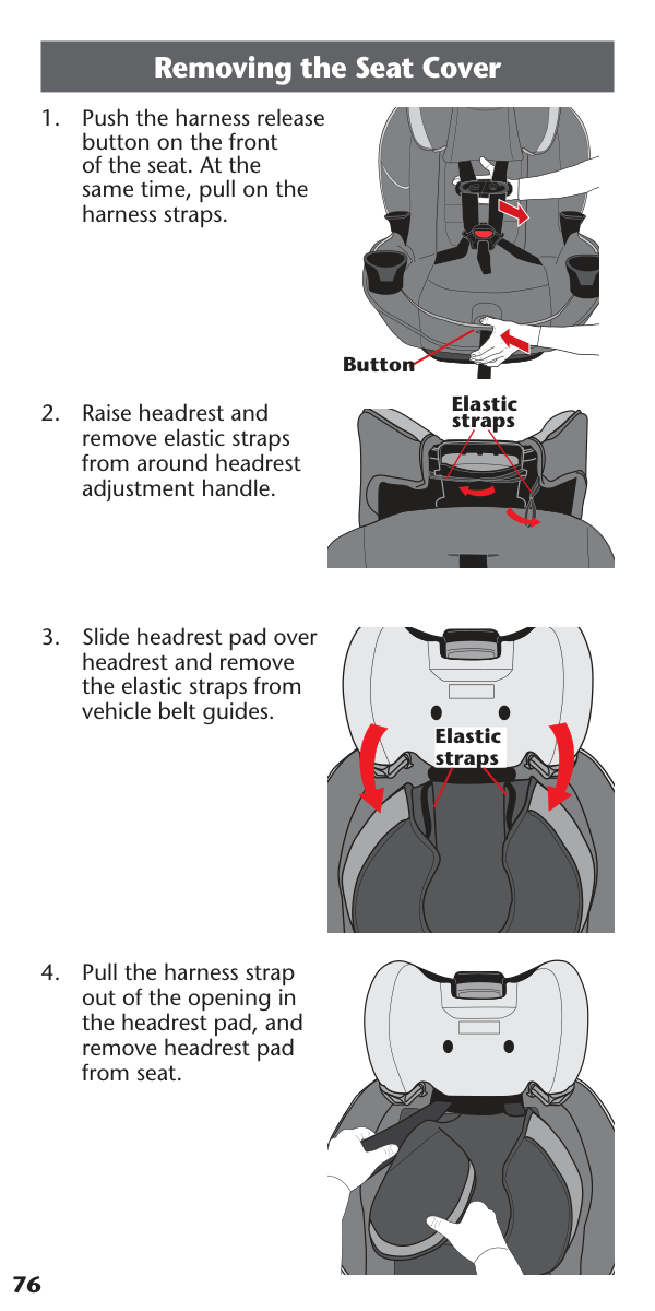 Do not cut off the excess tether strap, as it may not be long enough for use in another vehicle. Instead, tightly roll up the excess tether strap and place a rubber band around the bundle to secure it. You must do this to avoid a strangulation hazard. (Page 44, 50)