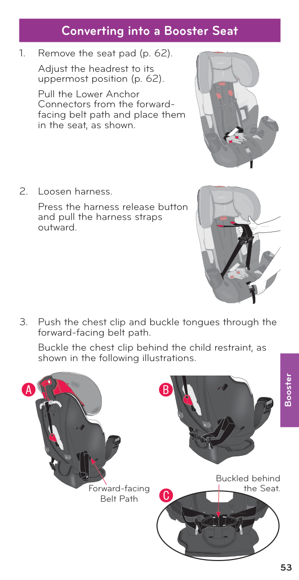 Converting into a Booster Seat54 Converting into a Booster Seat