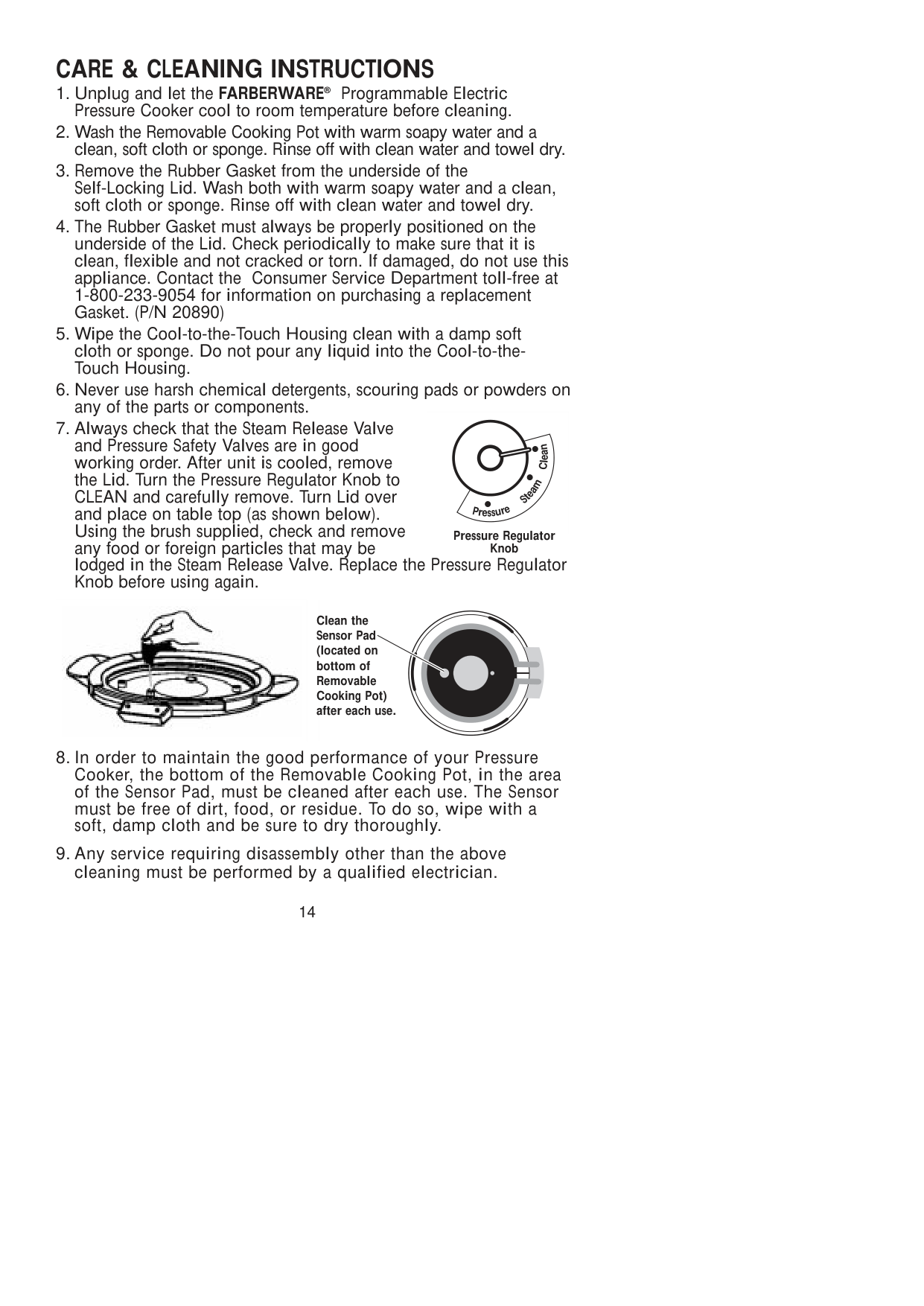 l e a n Pressure Regulator Knob Clean the Sensor Pad (located on bottom of Removable Cooking Pot) after each use.15