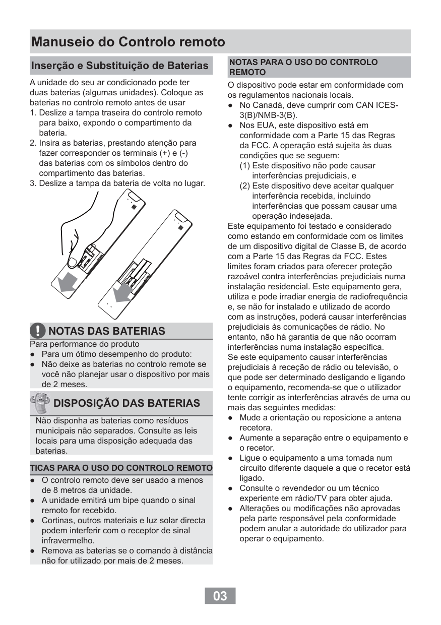 Remove the batteries from the remote controller if you do not plan to use the device for more than 2 months. Leaving batteries in the remote during extended periods of non-use is not recommended for optimum product performance. (Page 3/Page 20)