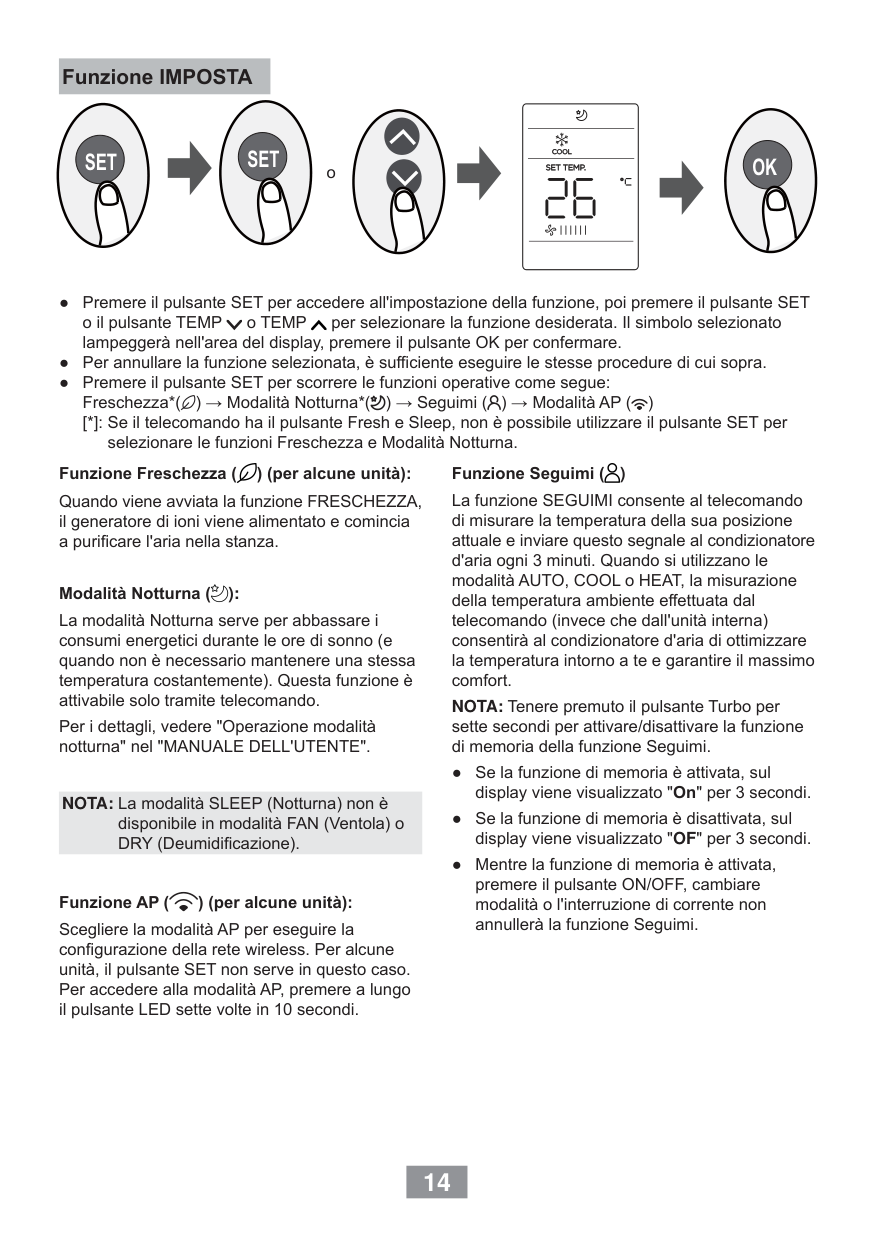 FOLLOW ME MODE controls the remote's position frequency and sends it every time for proper operation. AUTOMATIC COOLING or HEATING mode.