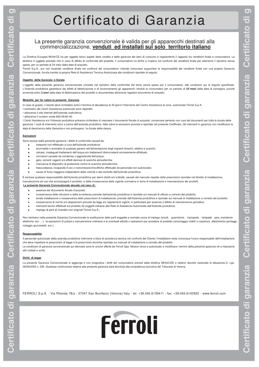 What is the operating temperature range for the Ferroli Ambra Remote Controller?