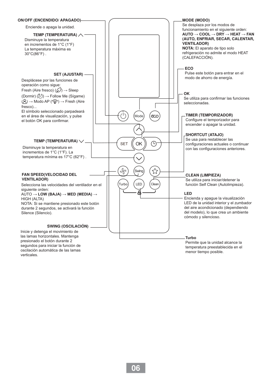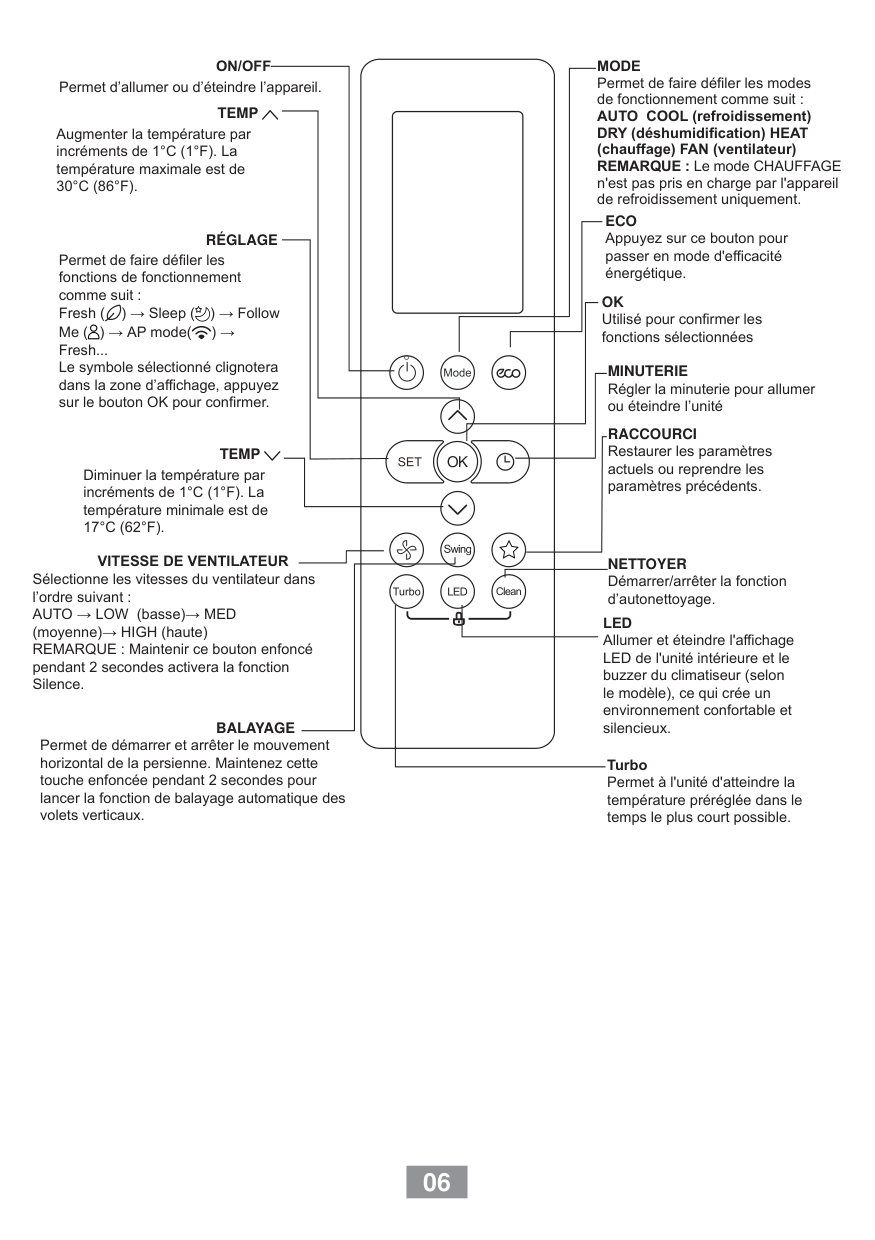 1 6 2 5 4 My Mode F Swing Mode On/Off Fan SleepAuto