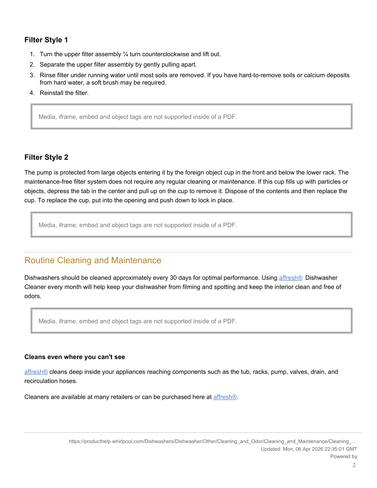 See Installation Instructions for more details on disconnecting and restoring service to your dishwasher.Care And Cleaning
