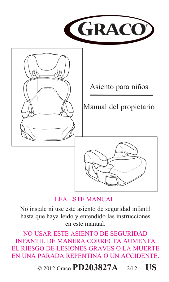 © 2012 Graco PD203827A 2/12 US Booster Seat Owner’s ManualRegistration Information ...............................3
