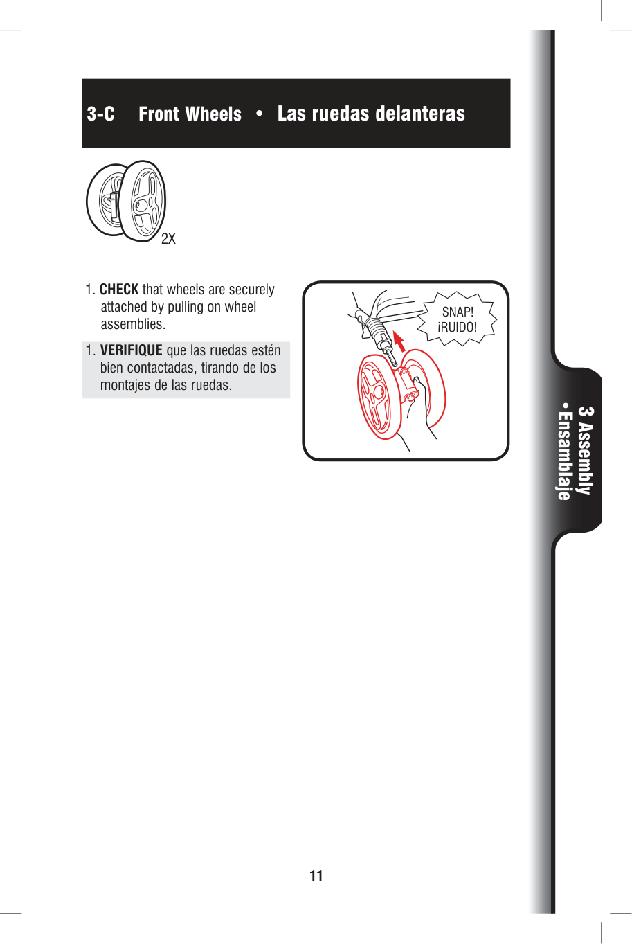 Swivel Wheels • Las ruedas giratorias Front swivel wheels lock for use on uneven surfaces such as grass, stones or gravel. Las ruedas giratorias delanteras se traban para el uso en superficies desparejas tales como césped, piedras o grava.4-C