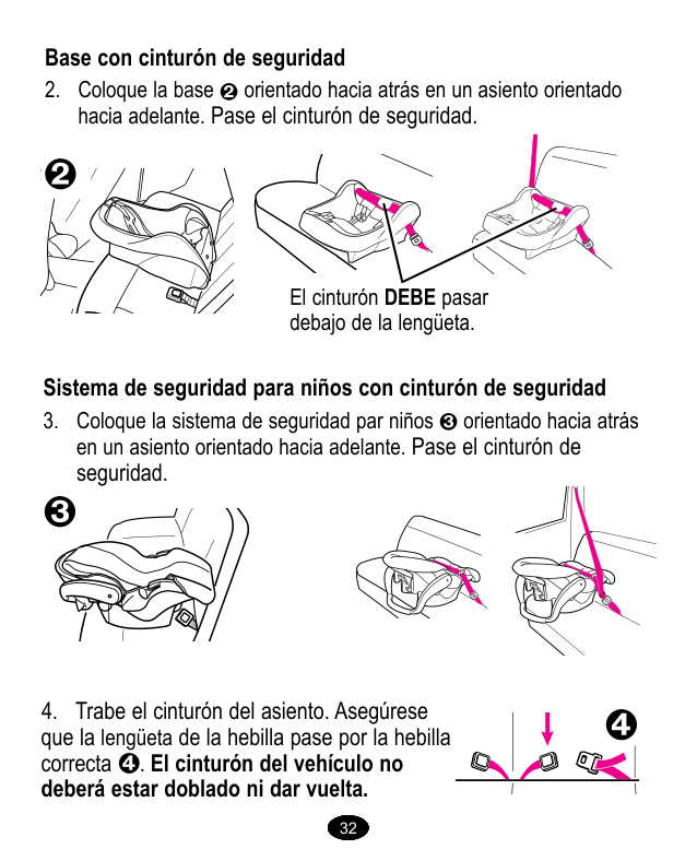 . Ajuste el cinturón de seguridad del vehículo. Consulte el manual del propietario del vehículo y las instrucciones en la sección "5.2.2. Sistemas SEGUROS de cinturones de seguridad para vehículo”, página 24 y 25 sobre cómo ajustar el cinturón del vehículo.