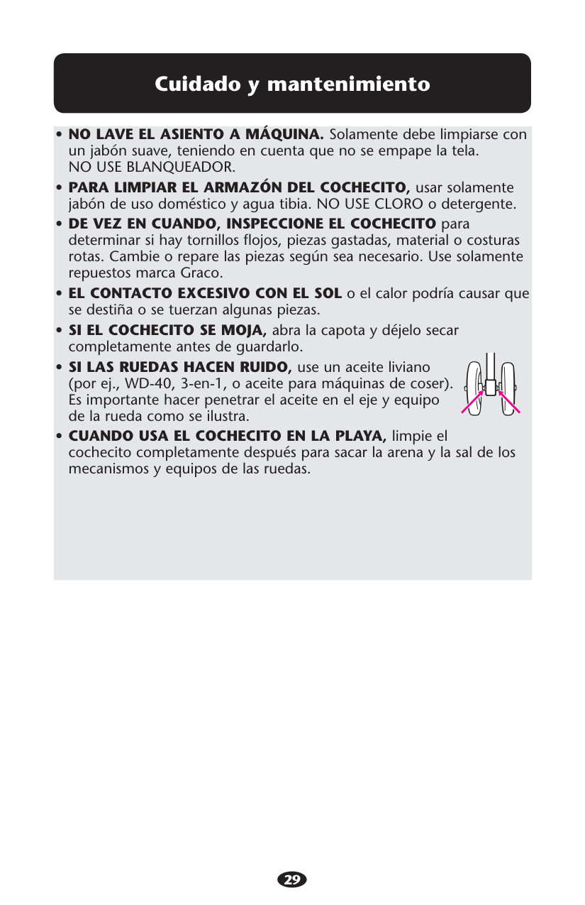 SISTEMA DE VIAJES GRACO. Consulte la hoja de instrucciones del cochecito para obtener más información sobre la conexión del sistema de seguridad para niños a su cochecito. Si no tiene una hoja de instrucciones, por favor llame gratis al 1-800-345-4109 para obtener una, o visite nuestro sitio Web, www.gracobaby.com.Guarde Los Cordones Y Cuerdas Fuera Del Alcance