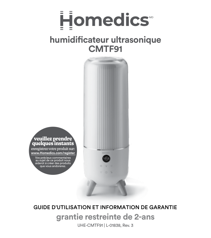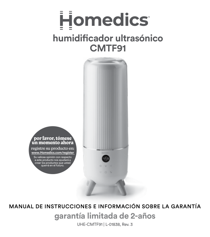 UHE-CMTF91 | L-01838, Rev. 3 please take a moment now register your product at www.Homedics.com/register Your valuable input regarding this product will help us create the products you will want in the future.2