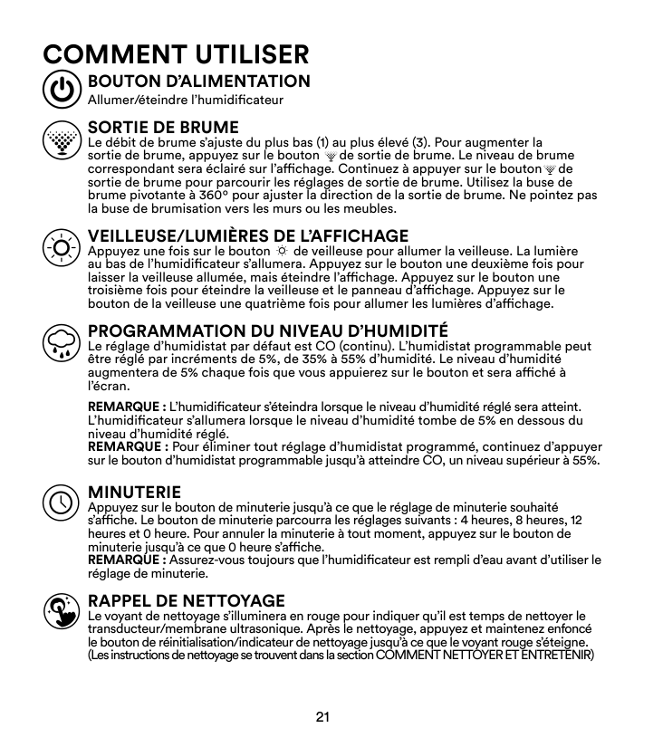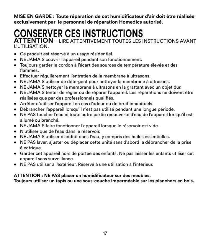 [email protected] 8 h 30 à 17 h 00 HNE du lundi au vendredi 1-888-225-7378por favor, tómese un momento ahora registre su producto en: www.Homedics.com/register Su valiosa opinión con respecto a este producto nos ayudará a crear los productos que usted querrá en el futuro. humidificador ultrasónico