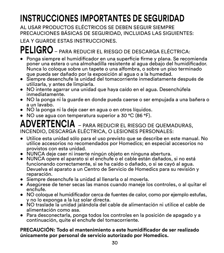 Descripción del producto: HUMIDIFICADOR ULTRASÓNICO Número de modelo: UHE-CMTF91 Nombre comercial: HomedicsDeclaración de conformidad con la FCC Este dispositivo cumple con la Parte 18 de las Reglas de la FCC. La operación está sujeta a las siguientes dos condiciones: (1) Este dispositivo no puede causar interferencias perjudiciales, y (2) Este dispositivo debe aceptar cualquier interferencia recibida, incluyendo la interferencia que pueda causar una operación no deseada. Información de contacto en EE. UU. Compañía: Homedics, LLC. Dirección: 3000 N Pontiac Trail, Commerce Township, MI 48390 8:30 a.m. a 7:00 p.m. EST de lunes a viernes 1-800-466-3342 Homedics no es responsable de ninguna interferencia de radio o televisión causada por modificaciones no autorizadas en este equipo. Tales modificaciones pueden anular la autoridad del usuario para operar el equipo. Este equipo ha sido probado y se ha encontrado que cumple con los límites de un dispositivo digital Clase B, según la Parte 18 de las Reglas de la FCC. Estos límites están diseñados para proporcionar una protección razonable contra interferencias perjudiciales en una instalación residencial. Este equipo genera, utiliza y puede radiar energía de radiofrecuencia y, si no se instala y utiliza de acuerdo con las instrucciones, puede causar interferencias perjudiciales en las comunicaciones de radio. Sin embargo, no se garantiza que no ocurran interferencias en una instalación particular. Si este equipo causa interferencias perjudiciales en la recepción de radio o televisión, lo cual puede determinarse apagando y encendiendo el equipo, se recomienda que el usuario intente corregir las interferencias mediante una o más de las siguientes medidas: